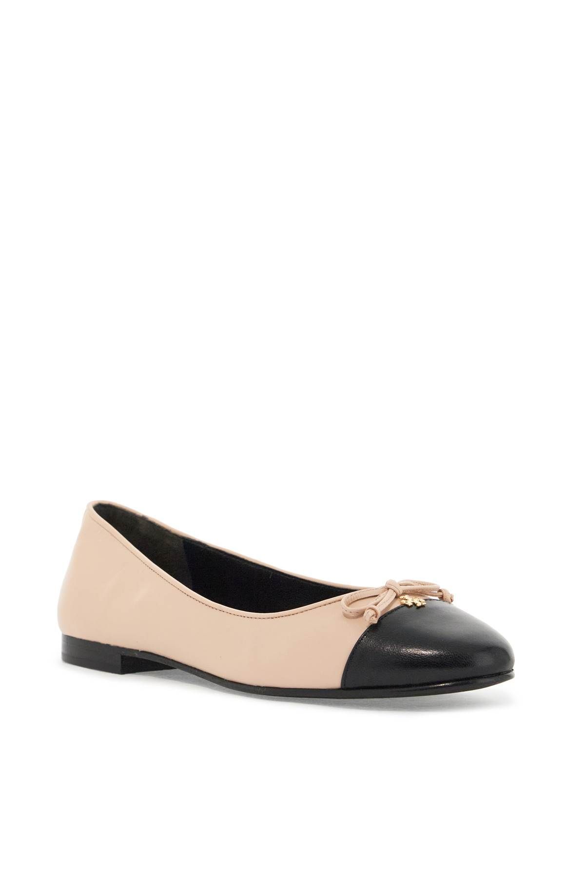 Tory Burch leather ballet flats finished with contrasting toe decorated with a bow and iconic gold-tone metal double-T monogram