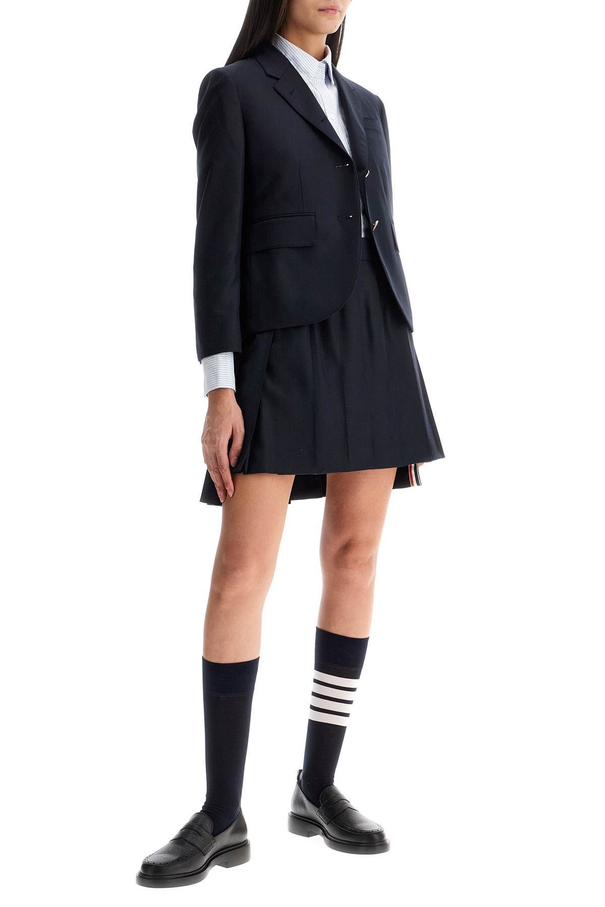 Thom Browne structured jacket in 120's wool twill, detailed with four-button cuffs with iconic tricolor grosgrain ribbon