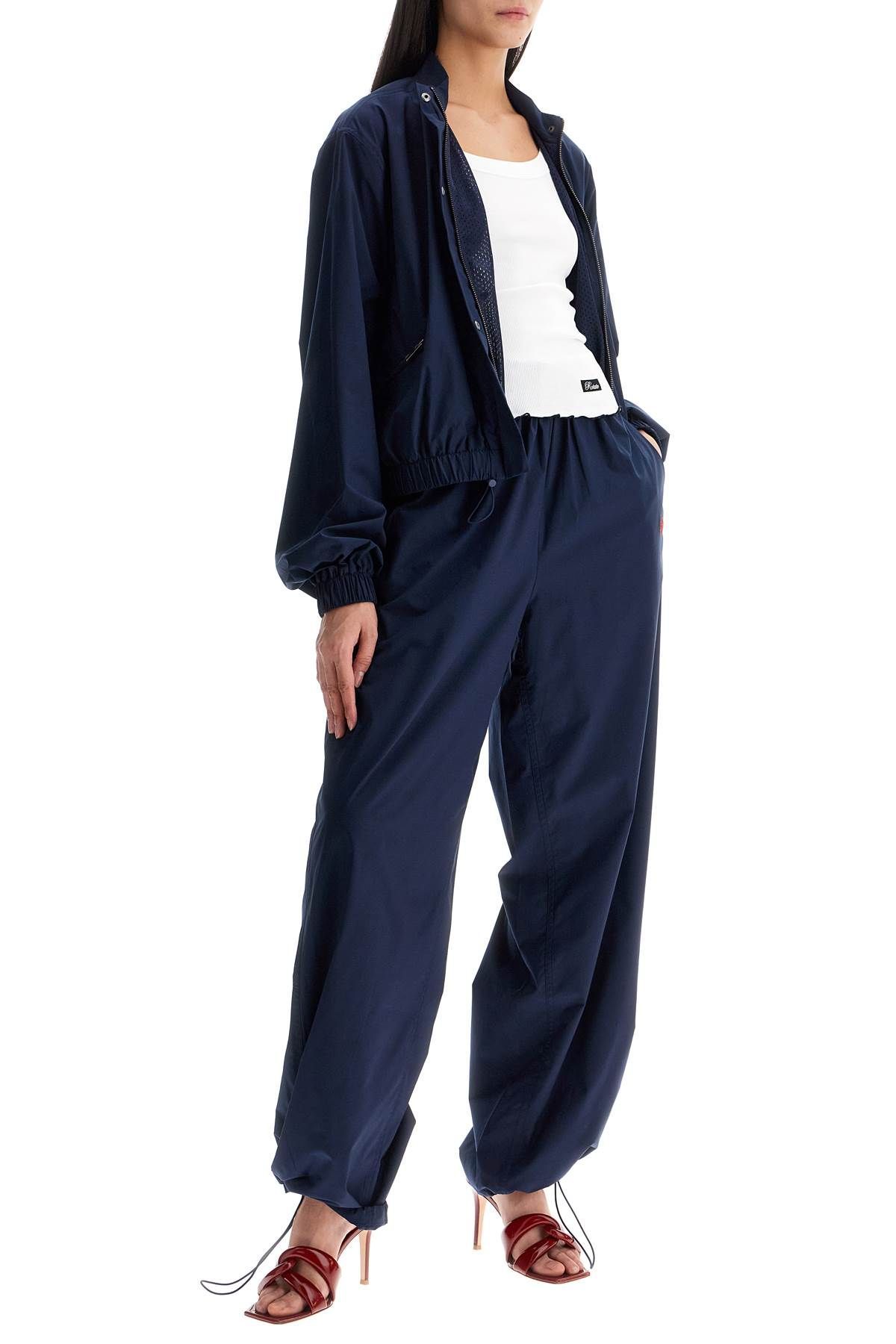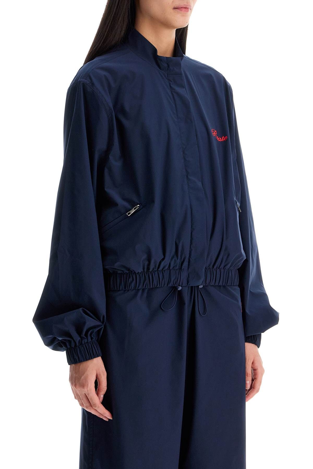 The Rotate lightweight blouson is made of recycled and stretch technical crepe, featuring a short and boxy fit and decorated with a contrasting embroidered logo on the chest
