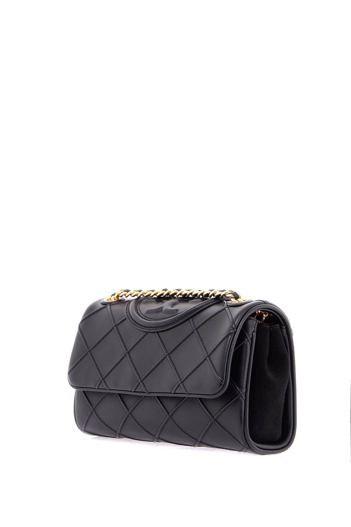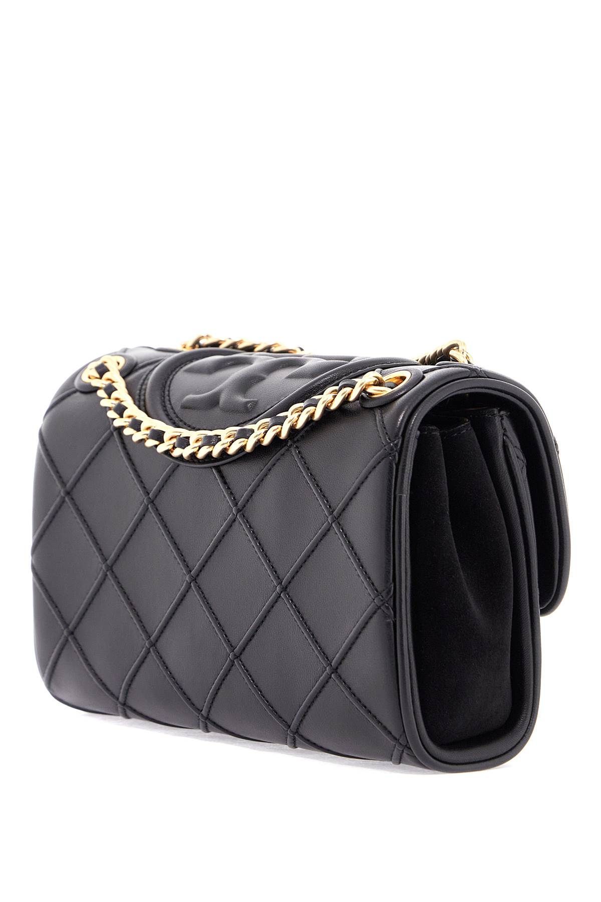Small Fleming bag by Tory Burch in nappa lambskin with embossed diamond quilting and embossed maxi Double T logo on the top