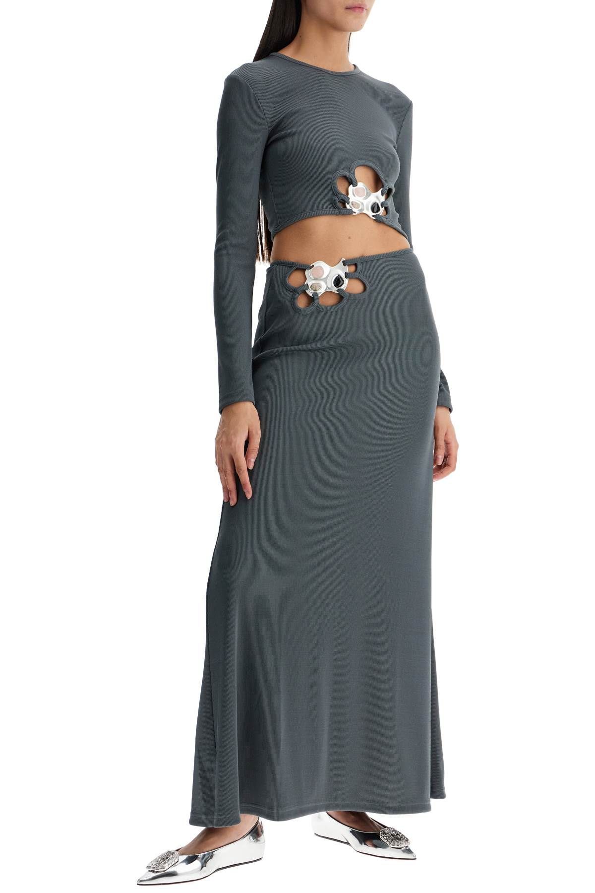 The Christopher Esber long skirt features a slightly flared silhouette, crafted from soft ribbed stretch fabric