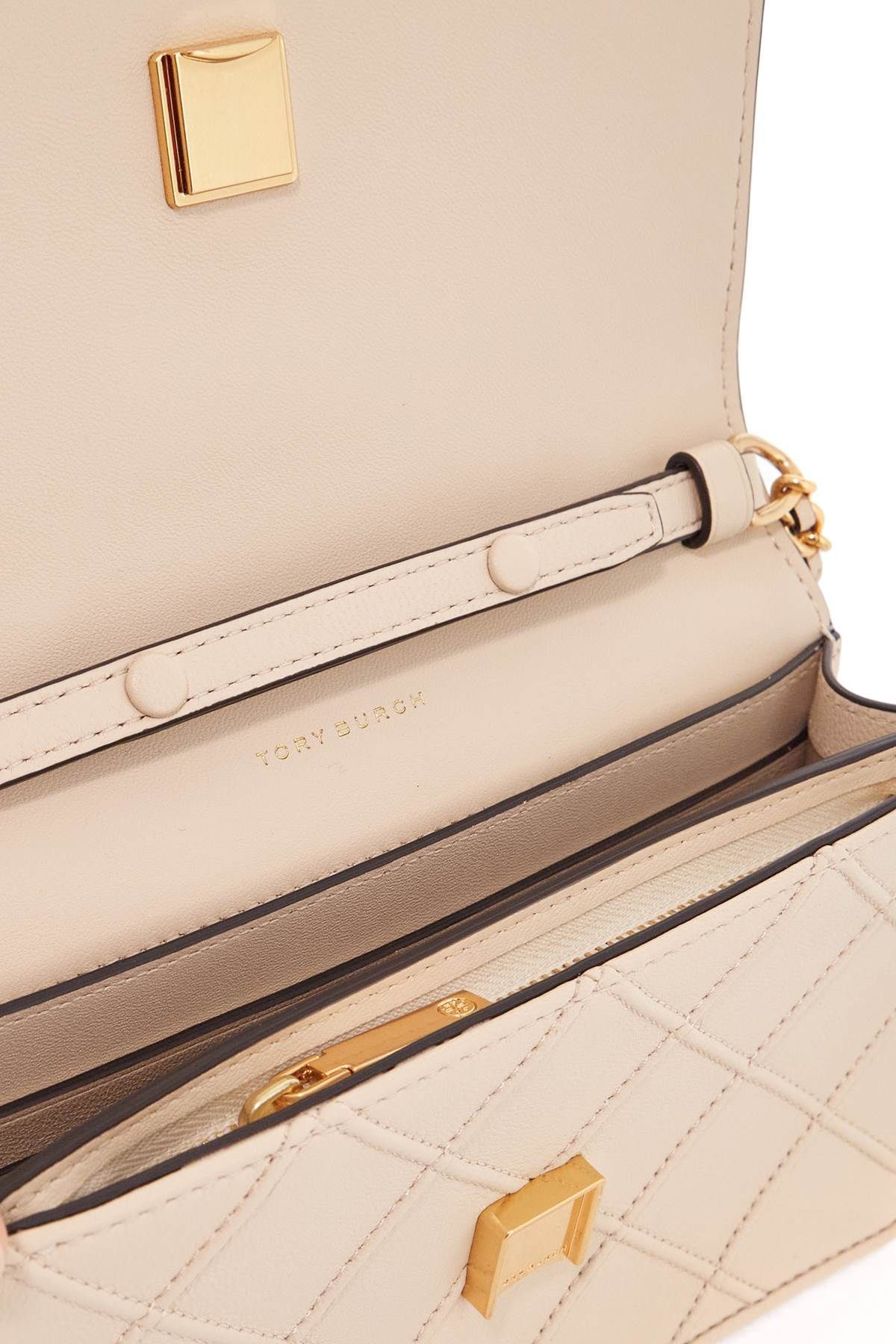 Fleming bag by Tory Burch in nappa lambskin with embossed diamond quilting and embossed maxi Double T logo on the top