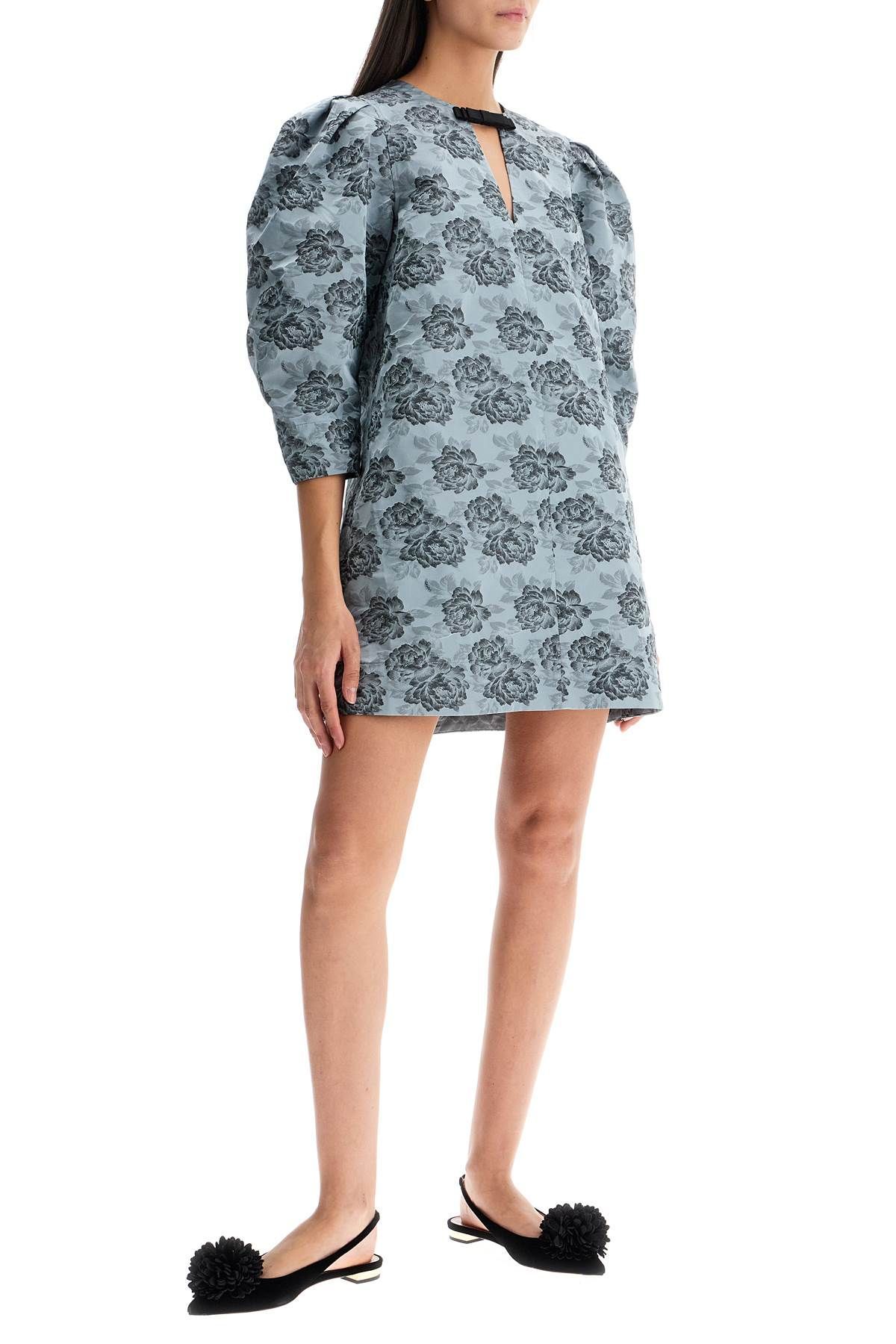Crafted in floral jacquard, this Ganni mini dress features a trapeze silhouette enhanced by three-quarter sleeves with pleated details on the shoulders