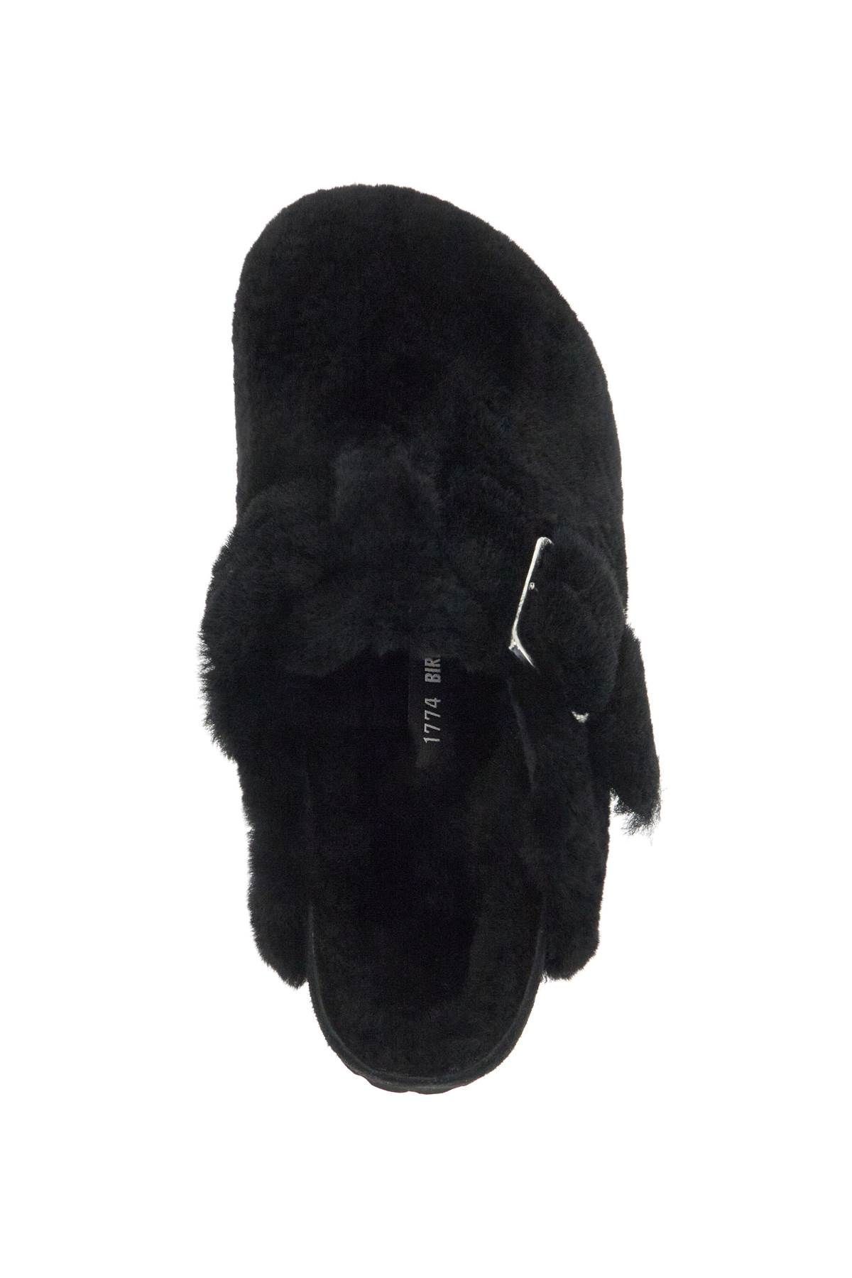The Boston clogs from the BIRKENSTOCK 1774 collection are made of shearling and come with an adjustable strap featuring a silver buckle engraved with the brand's logo