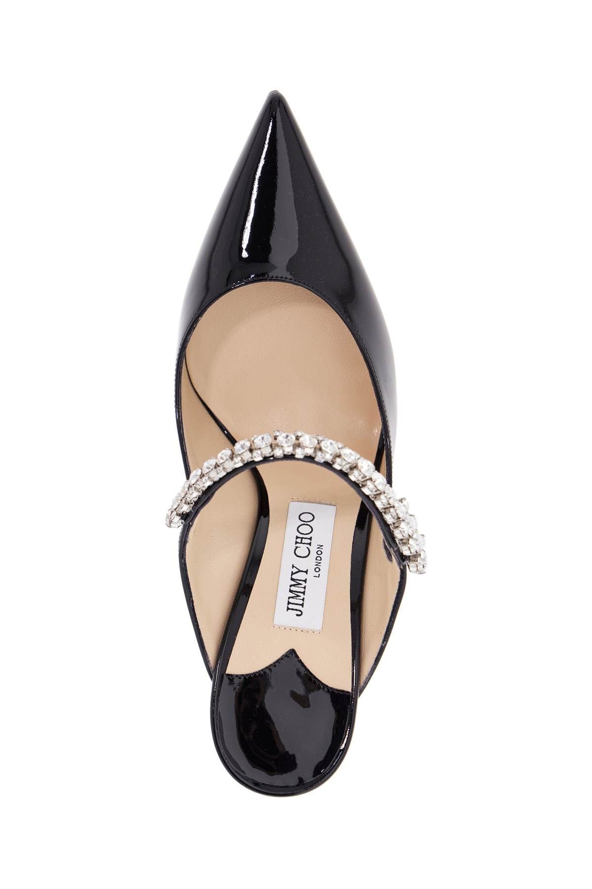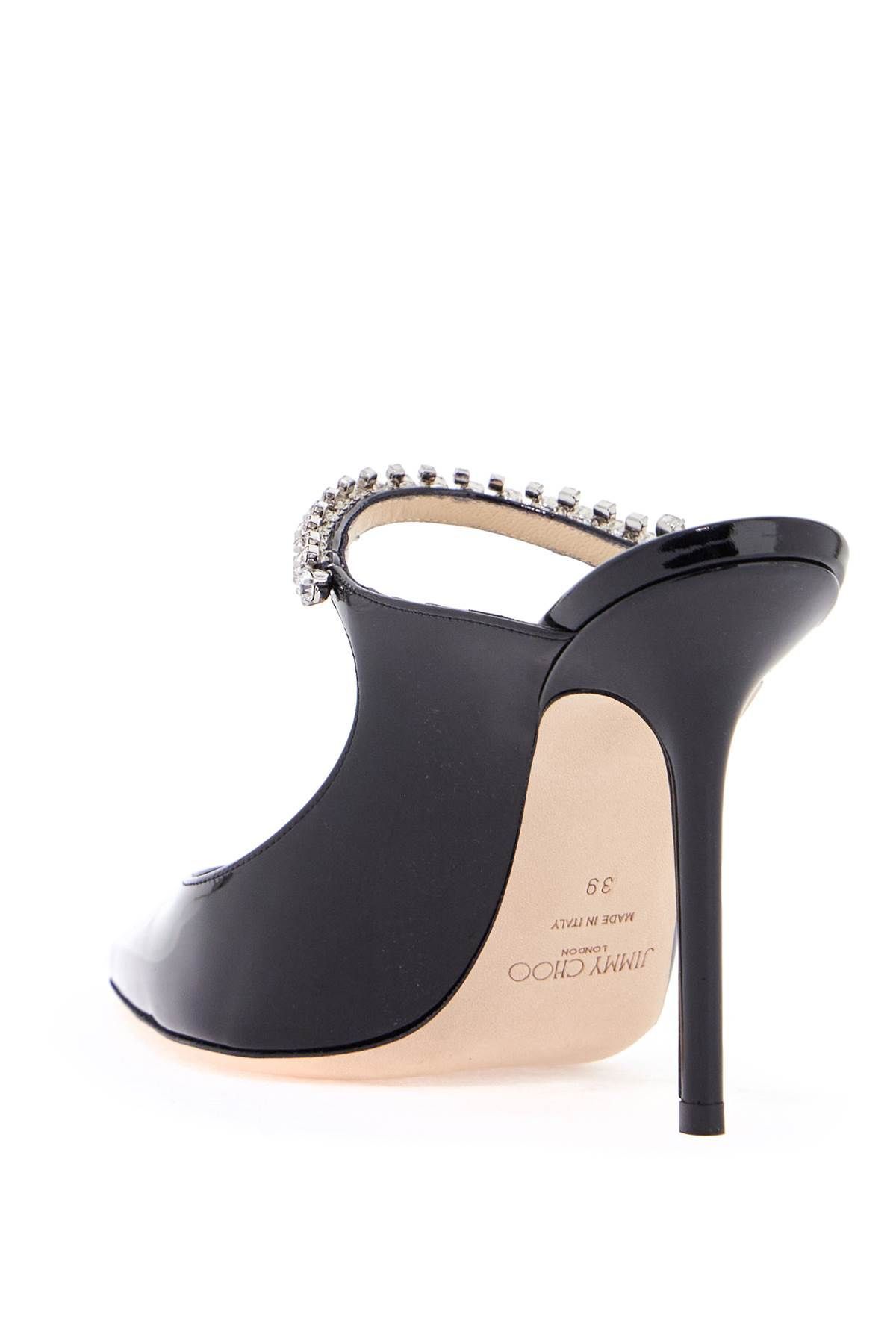 Bing patent mules by Jimmy Choo, decorated with embedded crystals on the front strap