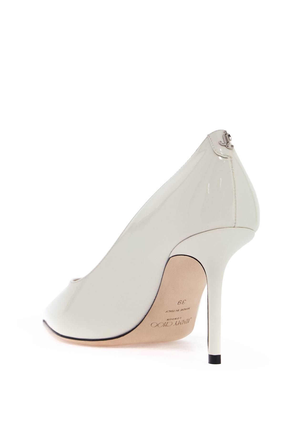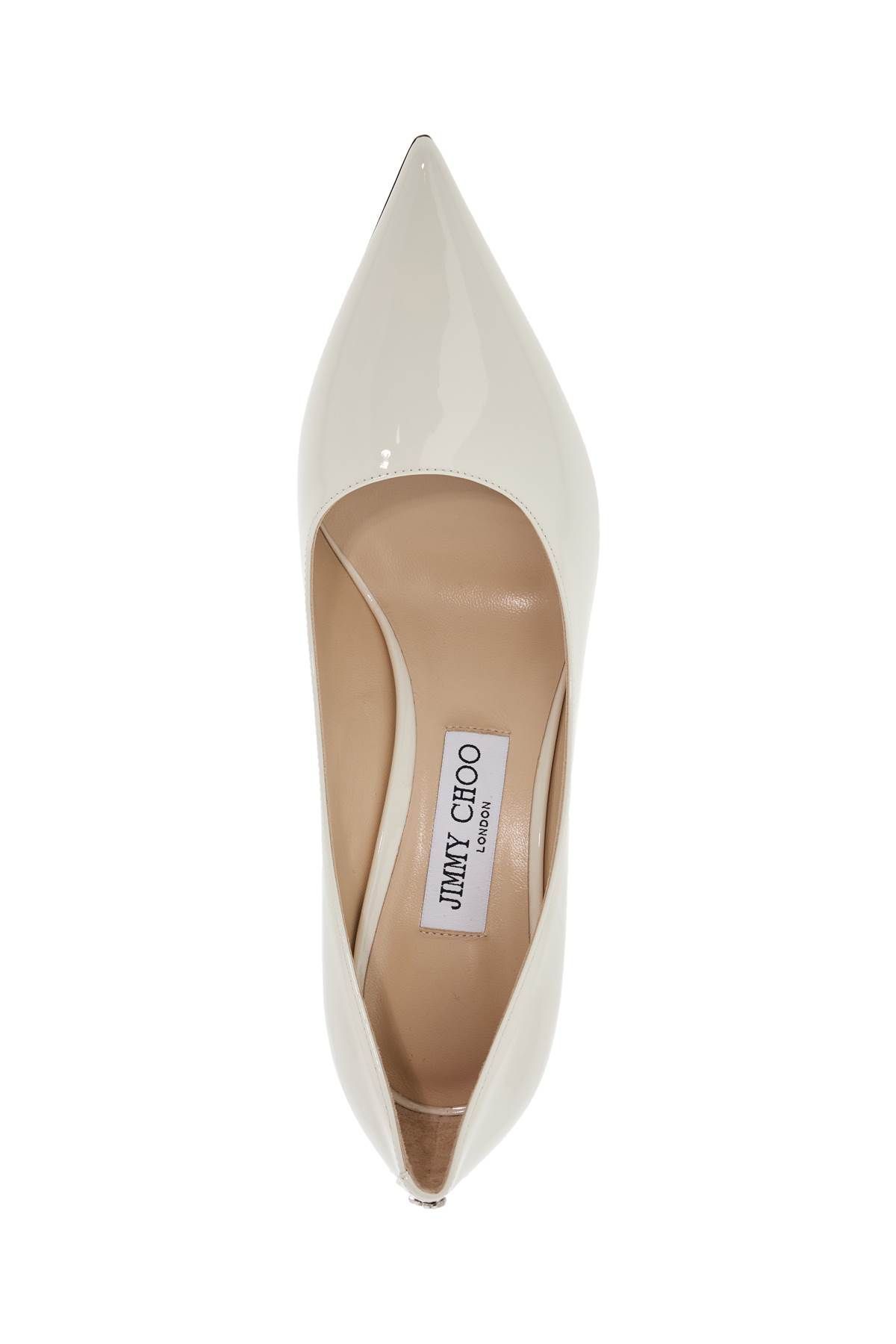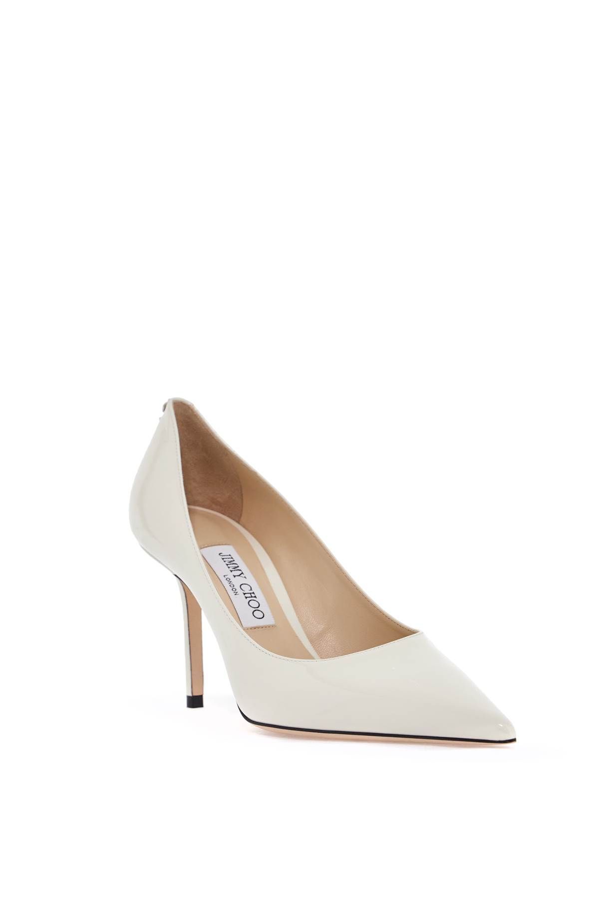 Jimmy Choo Love 85 pumps in patent leather with silver metal JC logo applied to the heel