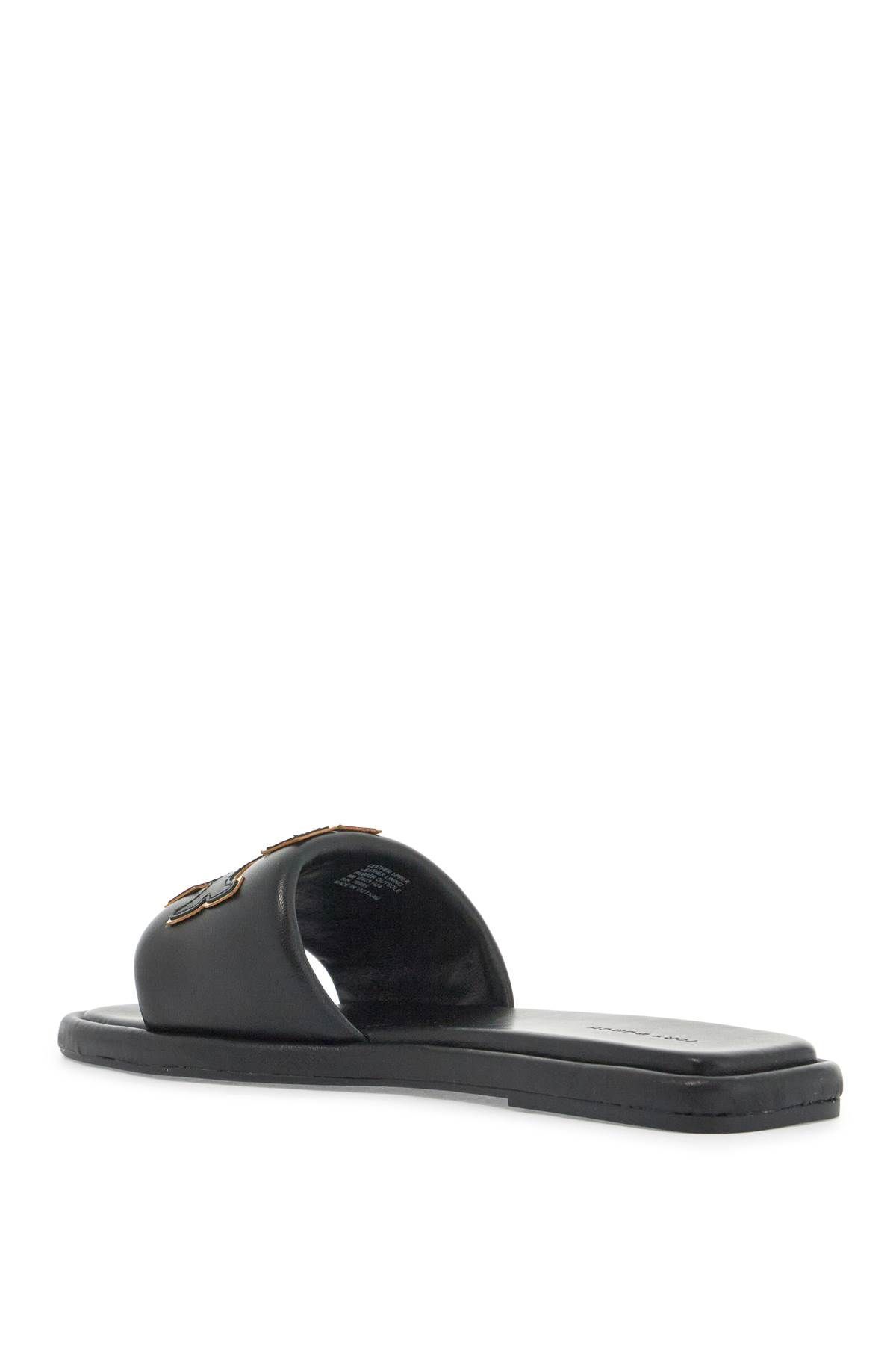 Tory Burch slides crafted in smooth leather and characterized by the single padded band enriched with the iconic Double T logo in tone-on-tone leather with gold laminated leather edge