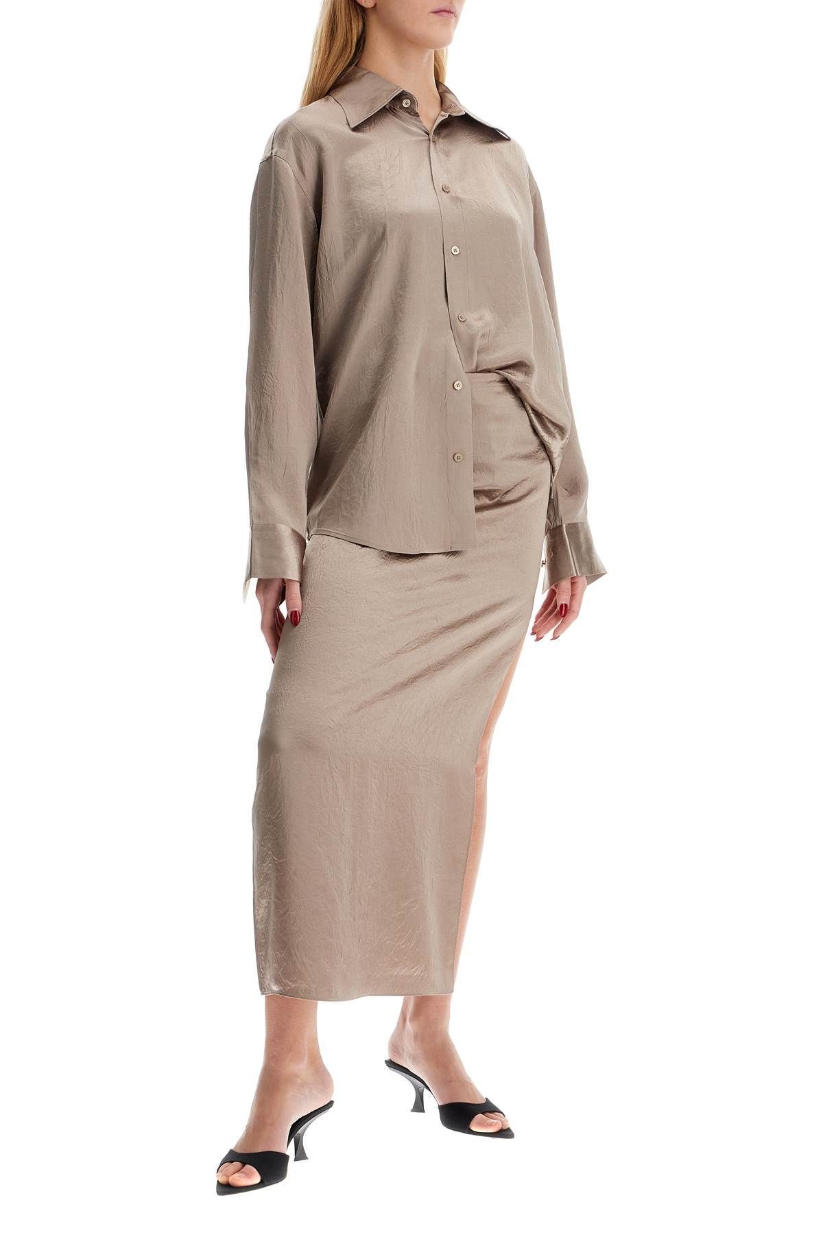 This Filippa K long-sleeved shirt is made of crinkled satin with a clean design featuring an exaggerated pointed collar