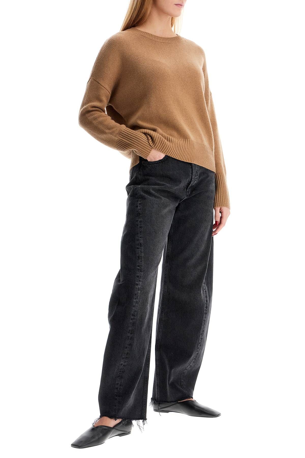 The Lisa Yang crew neck pullover is made of pure cashmere knit with ribbed edges and an asymmetrical hem