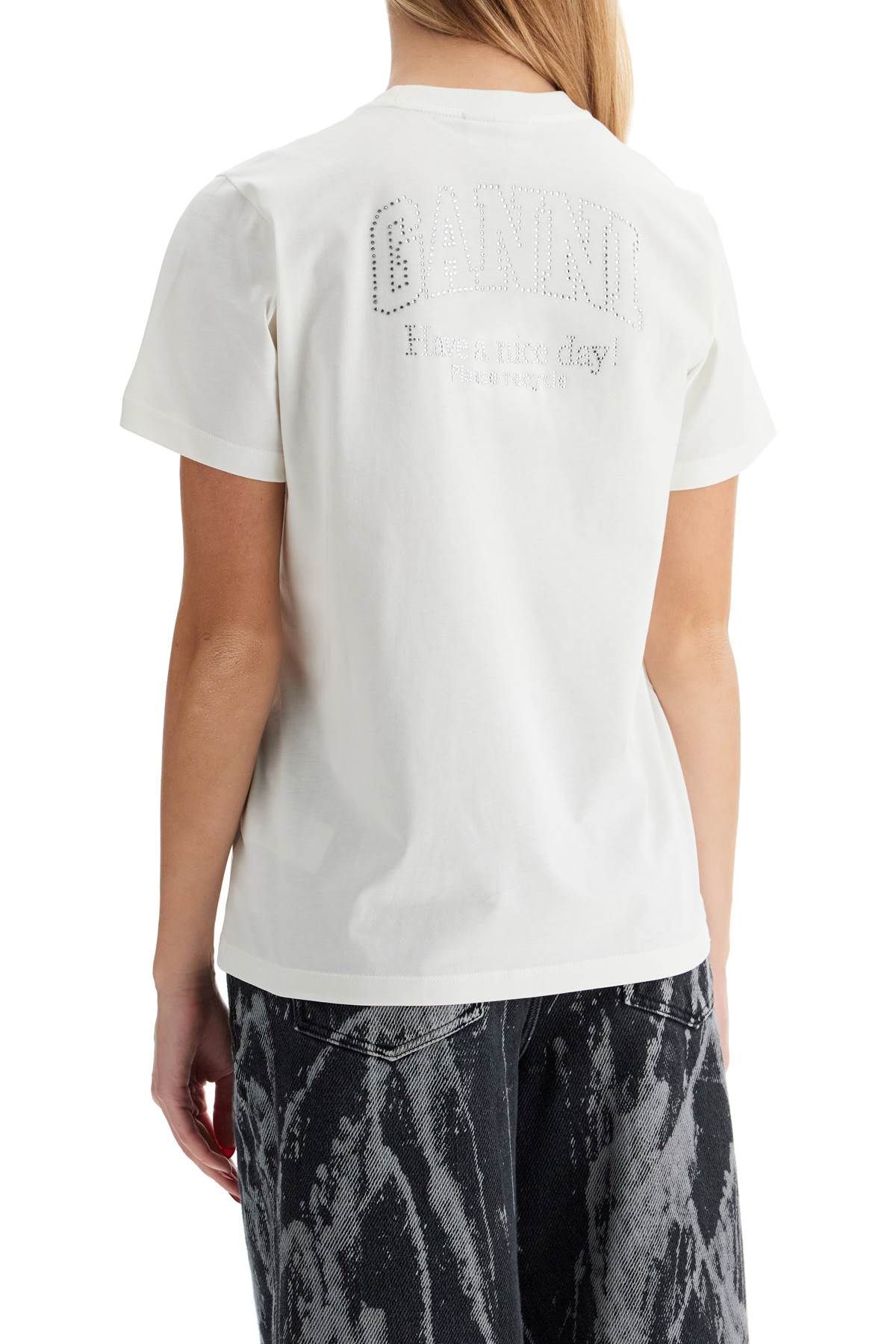 This Ganni T-shirt is made of organic cotton jersey and features a Butterfly logo on the front and lettering with rhinestones on the back