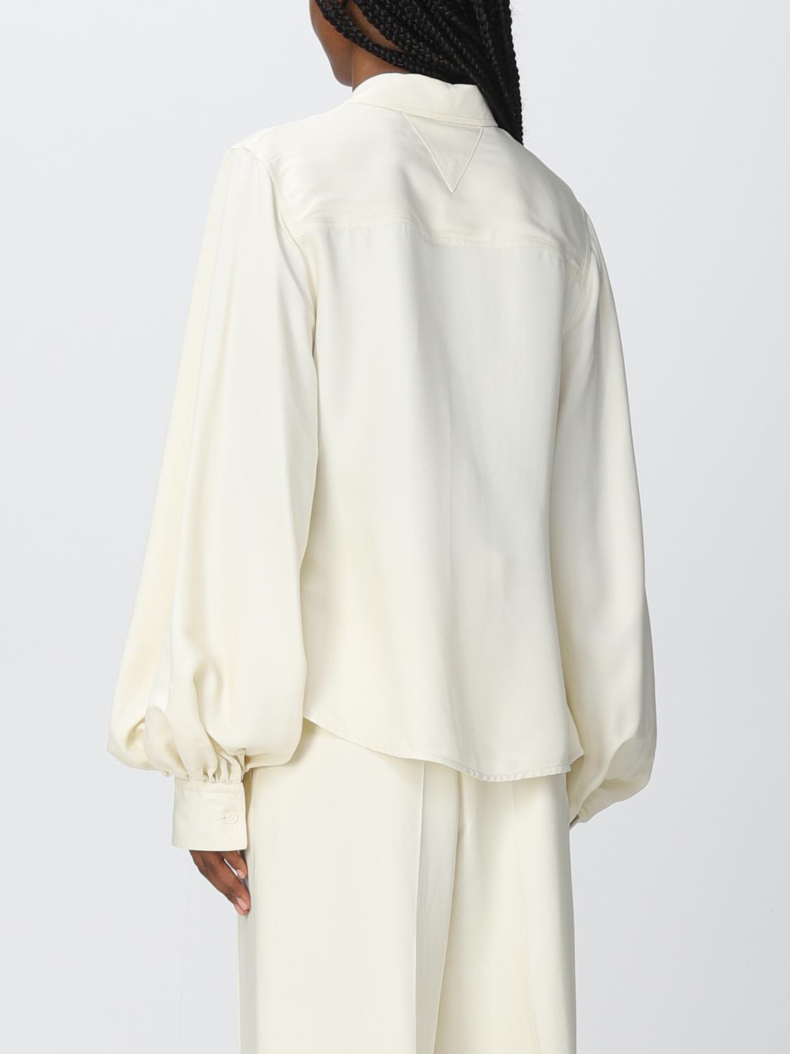 - Elegant design - Silk and viscose - Regular fit - Maxi pointy collar - Central closure with buttons - Poet sleeves - Button cuffs - Curved hemline - Made in Italy