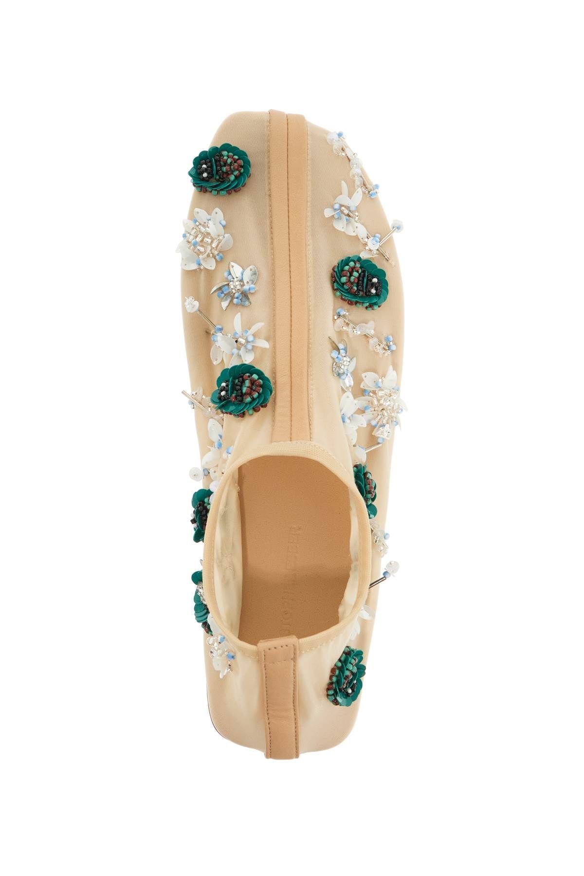 The Embla ballerinas by Christopher Esber are made of compact mesh and adorned with sequin and bead flowers