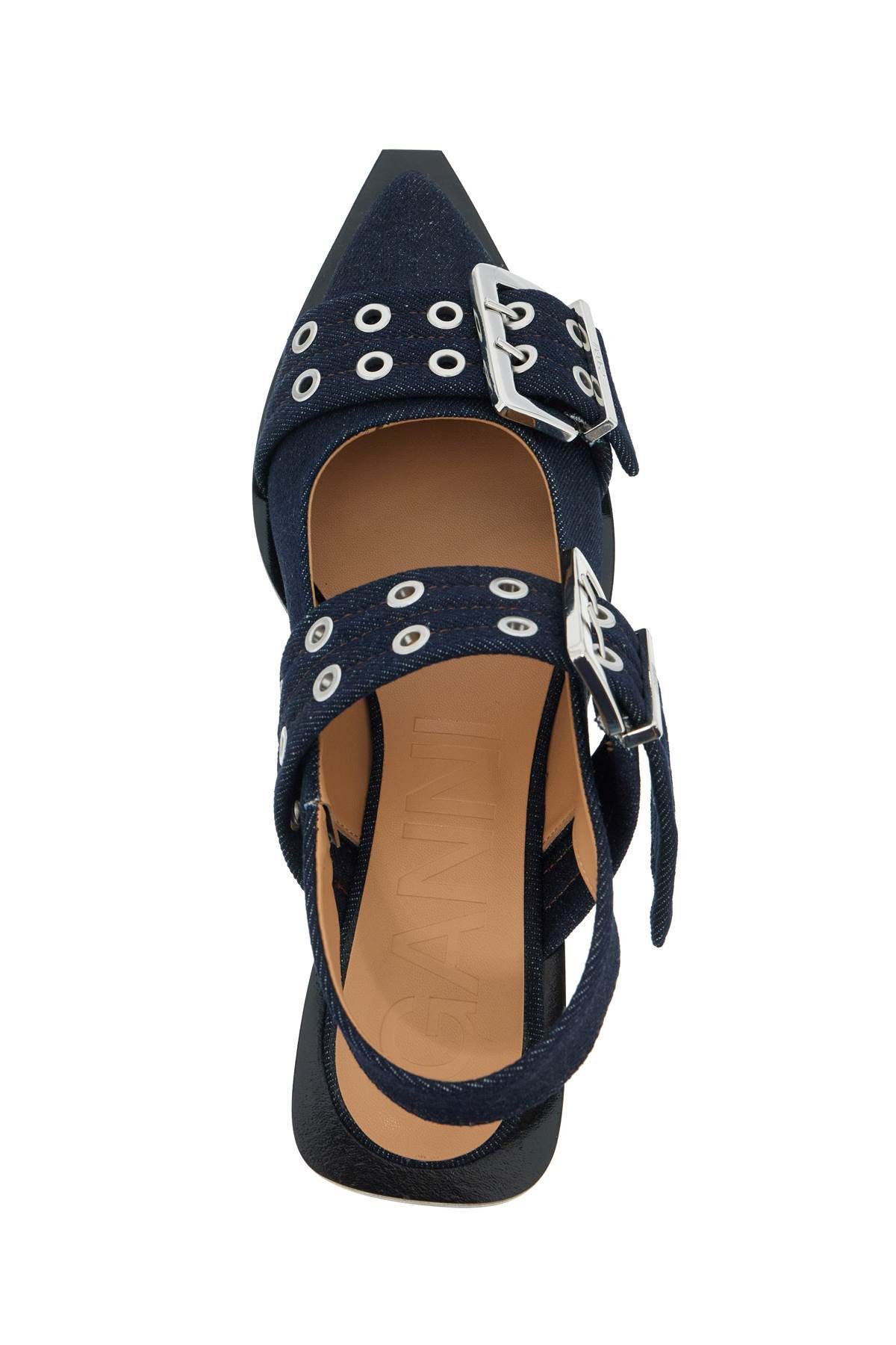 These Ganni slingback ballerinas are made from recycled cotton denim and feature adjustable maxi silver metal buckles