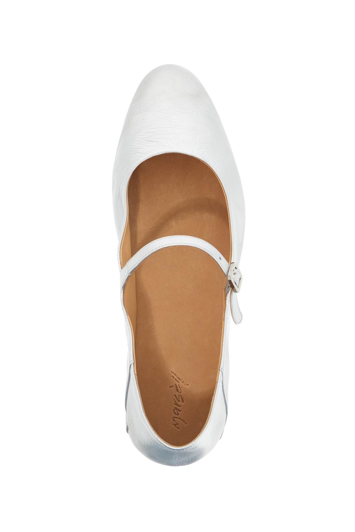 Marsell's Mary Jane style Ballerine Strascico are made of laminated leather with an adjustable strap, leather insole and leather sole