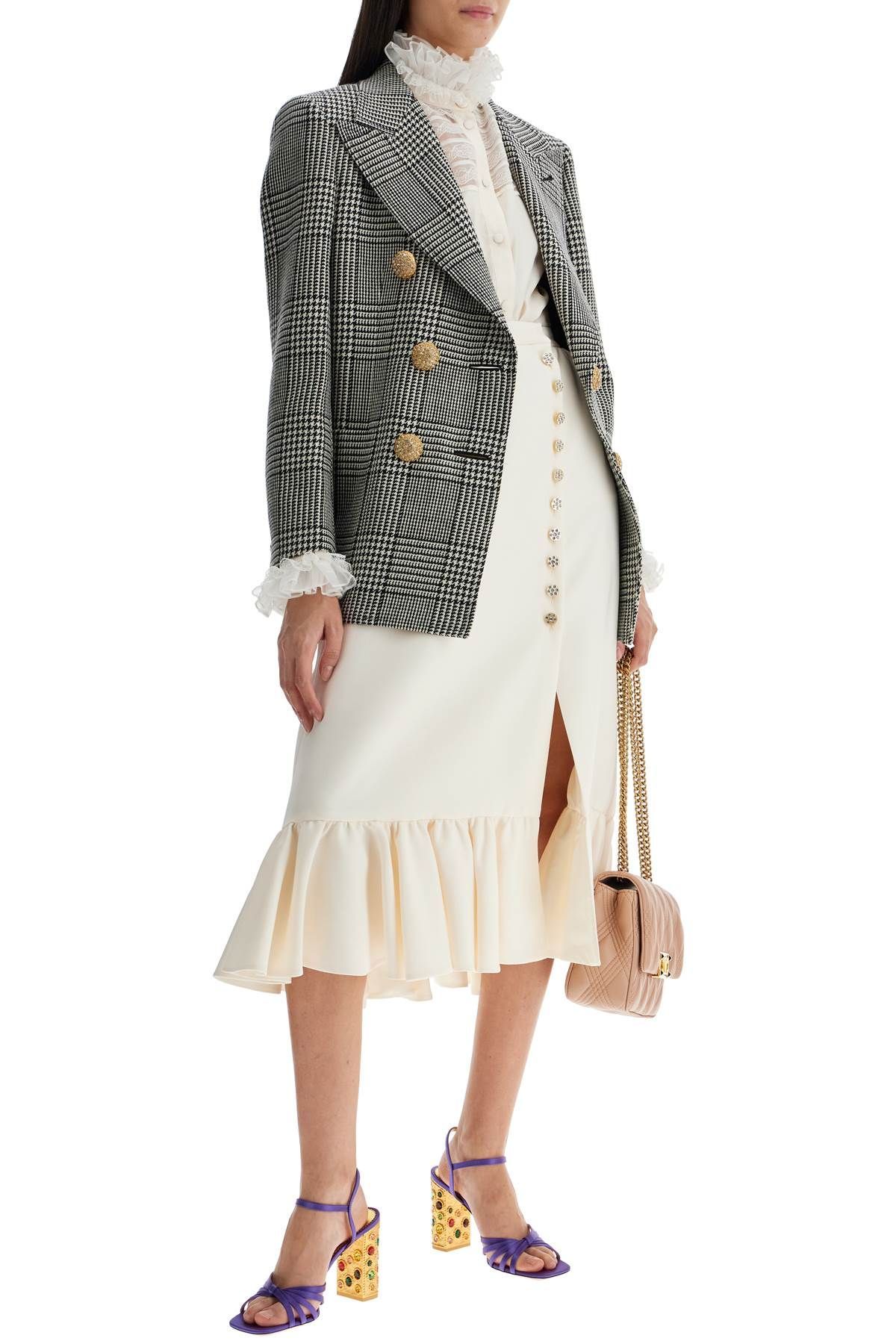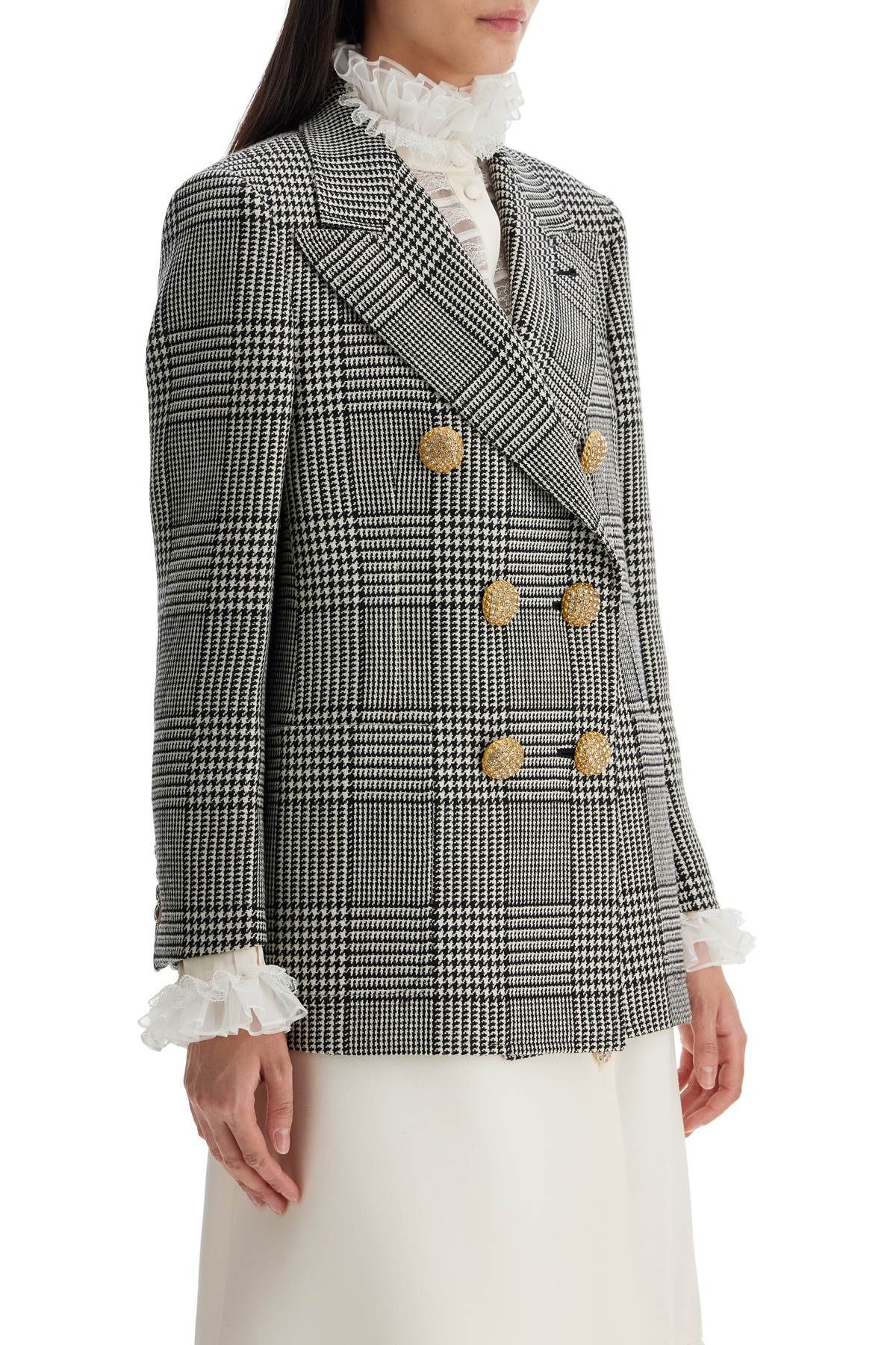 Valentino's double-breasted blazer in pure virgin wool pied-de-poule is enriched by six large jewel buttons