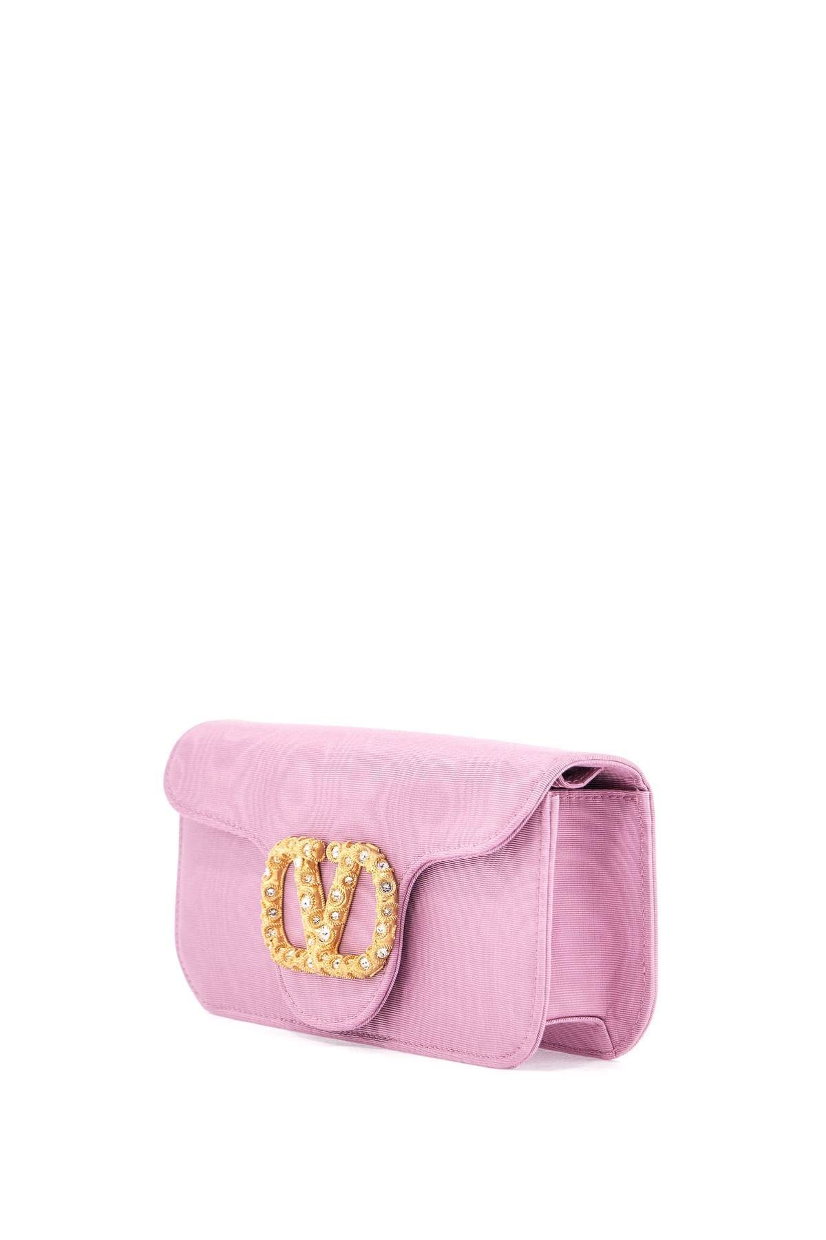 Valentino Garavani's Clutch Loco is made of moire fabric and embellished with a VLogo Signature element decorated with Swarovski®
