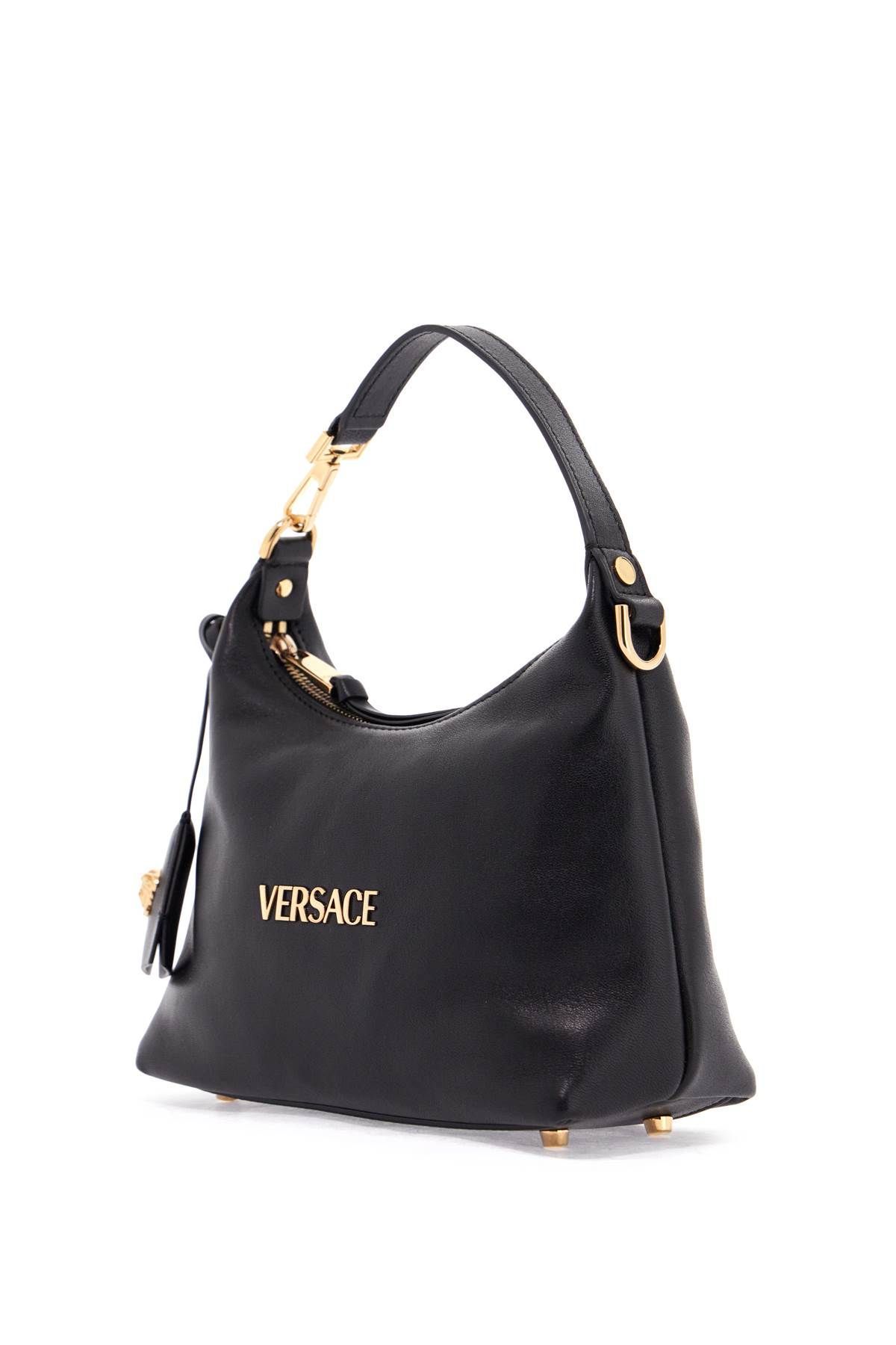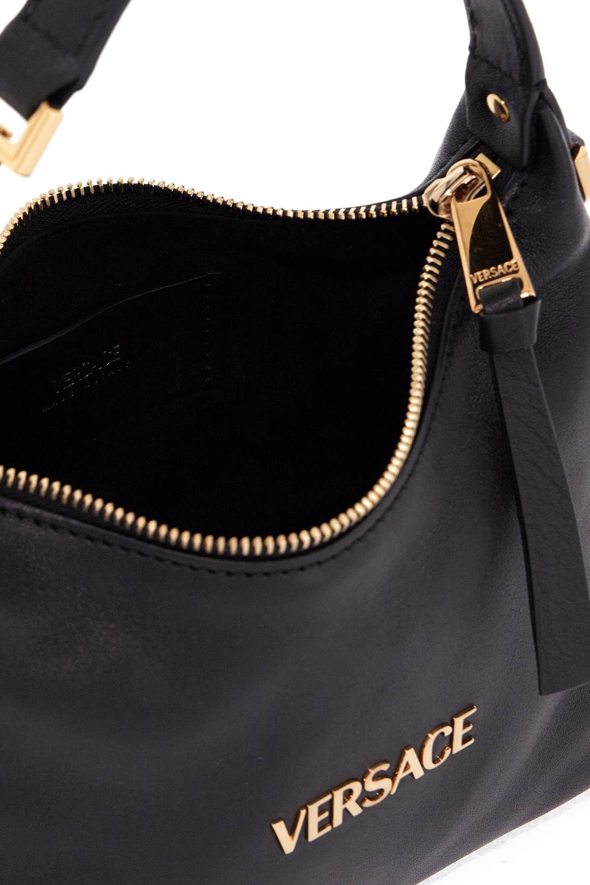 This Versace hobo bag is made of soft nappa leather and features a versatile design that can be worn by hand or with the adjustable and removable leather shoulder strap