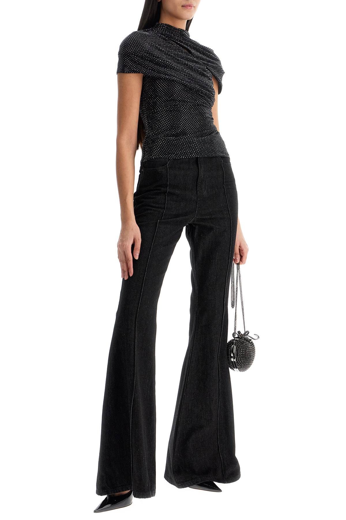 These high-waisted Self-Portrait jeans are made from black denim and feature a flared silhouette inspired by the '70s, hugging the hips for a flattering fit