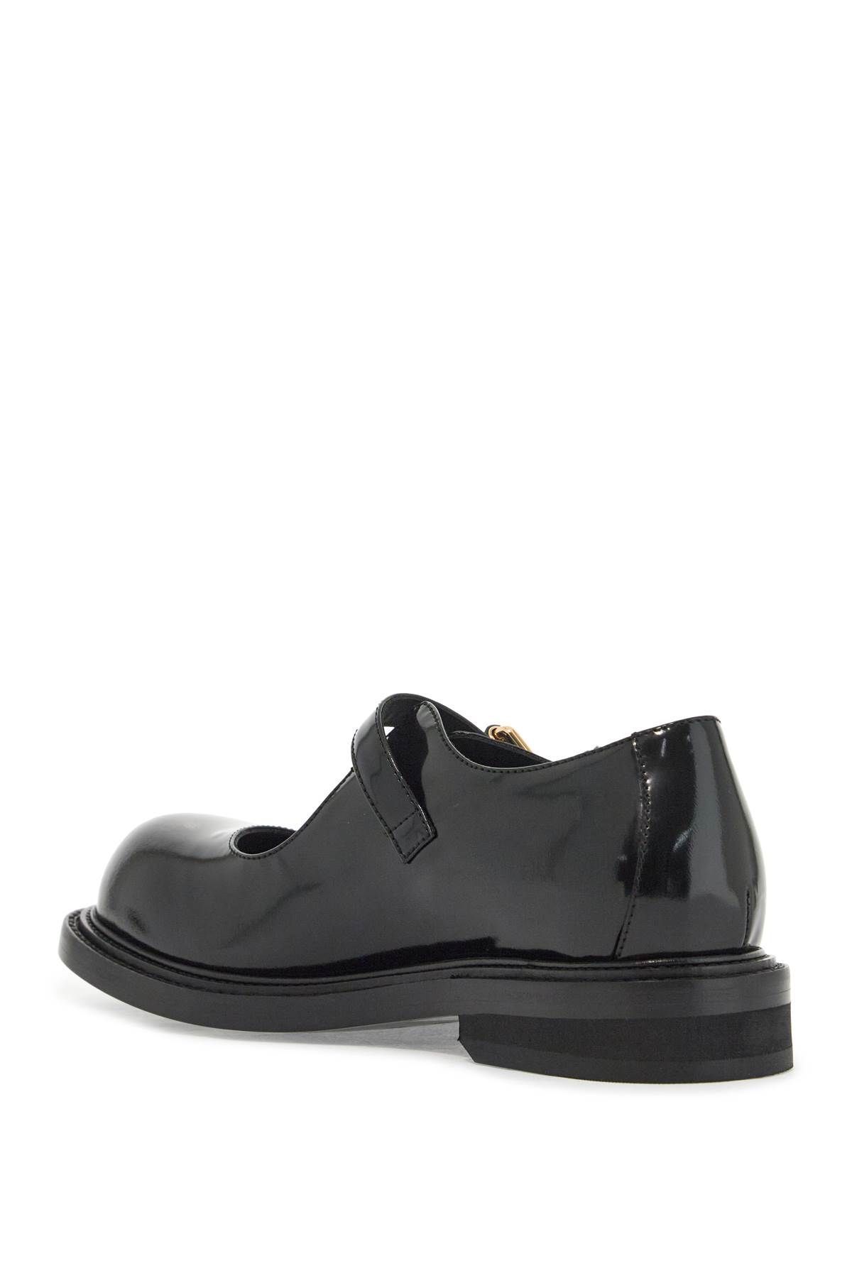 The Mary Jane Olivia by Moschino are made of lightly padded brushed leather, characterized by an exaggerated round toe