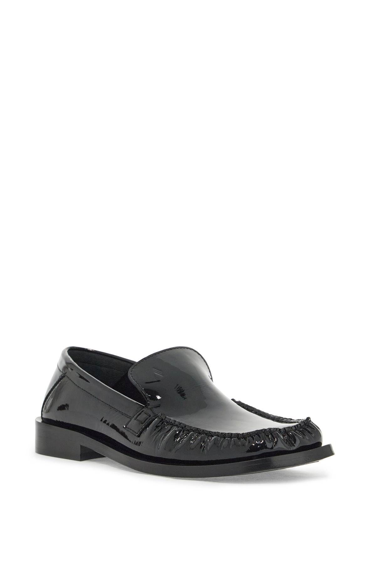 The Attico's Charles loafers are made of patent leather, featuring a square and ruffled toe and detailed with a monogram imprinted on the tongue
