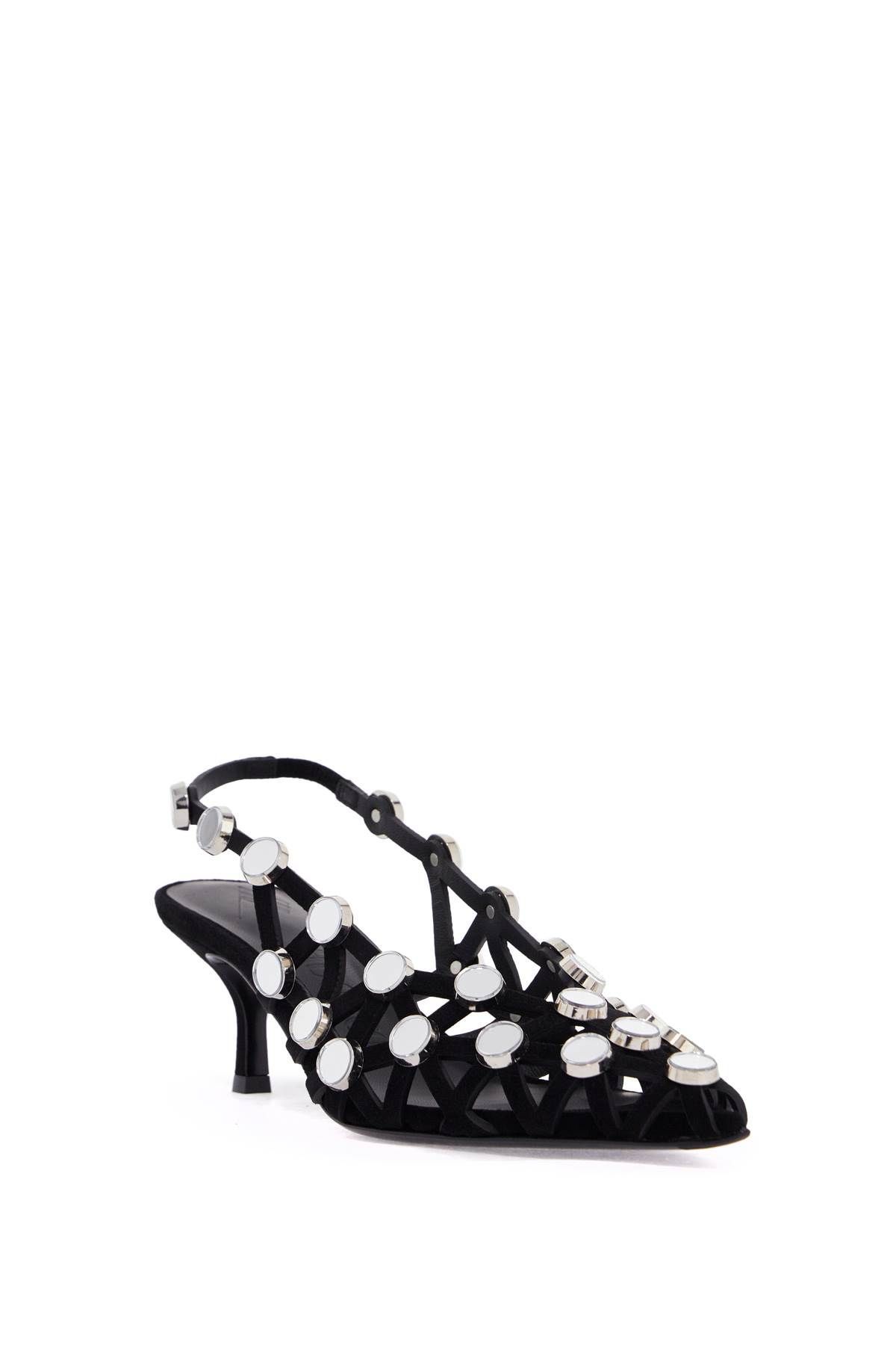 The Attico's Grid slingback décolleté features a suede leather upper embellished with circular mirrors