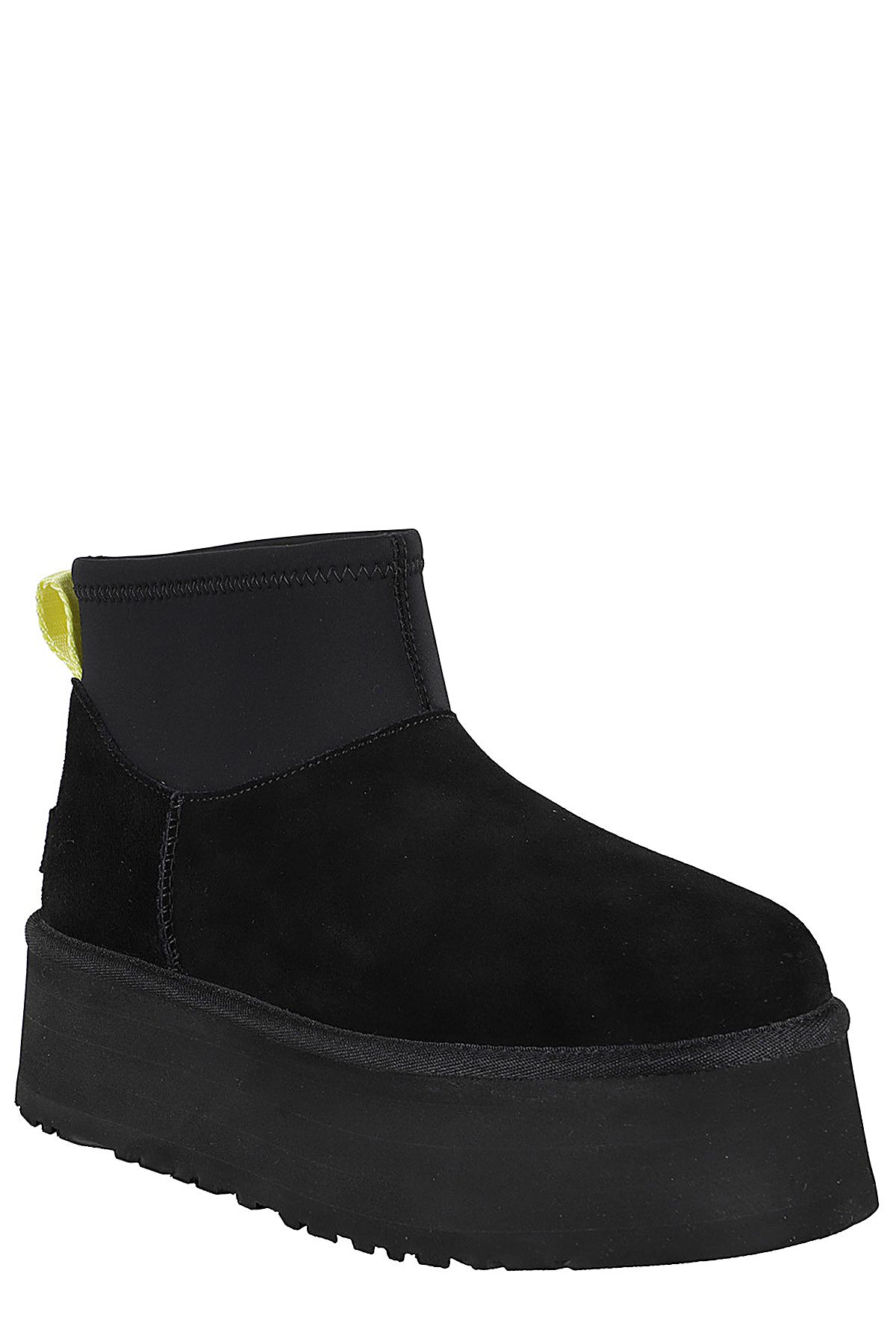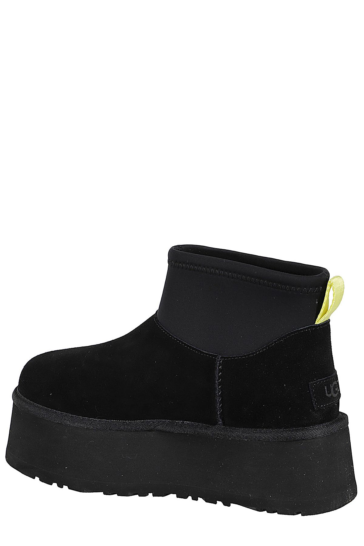 - Classic Mini Dipper Boot - Ugg - black color - suede upper - neoprene shaft - regenerated wool and lyocell lining - 5.1cm EVA platform sole - rear tie - round toe
