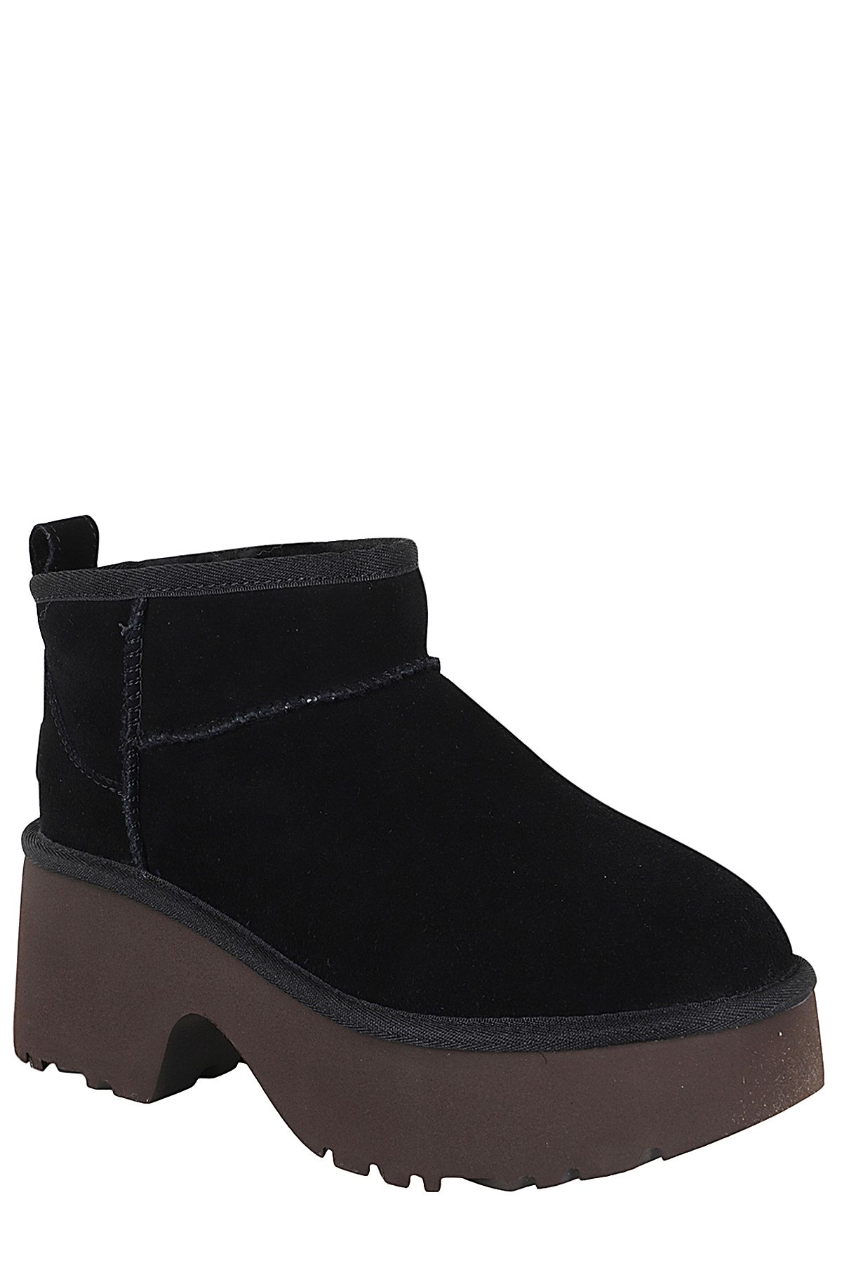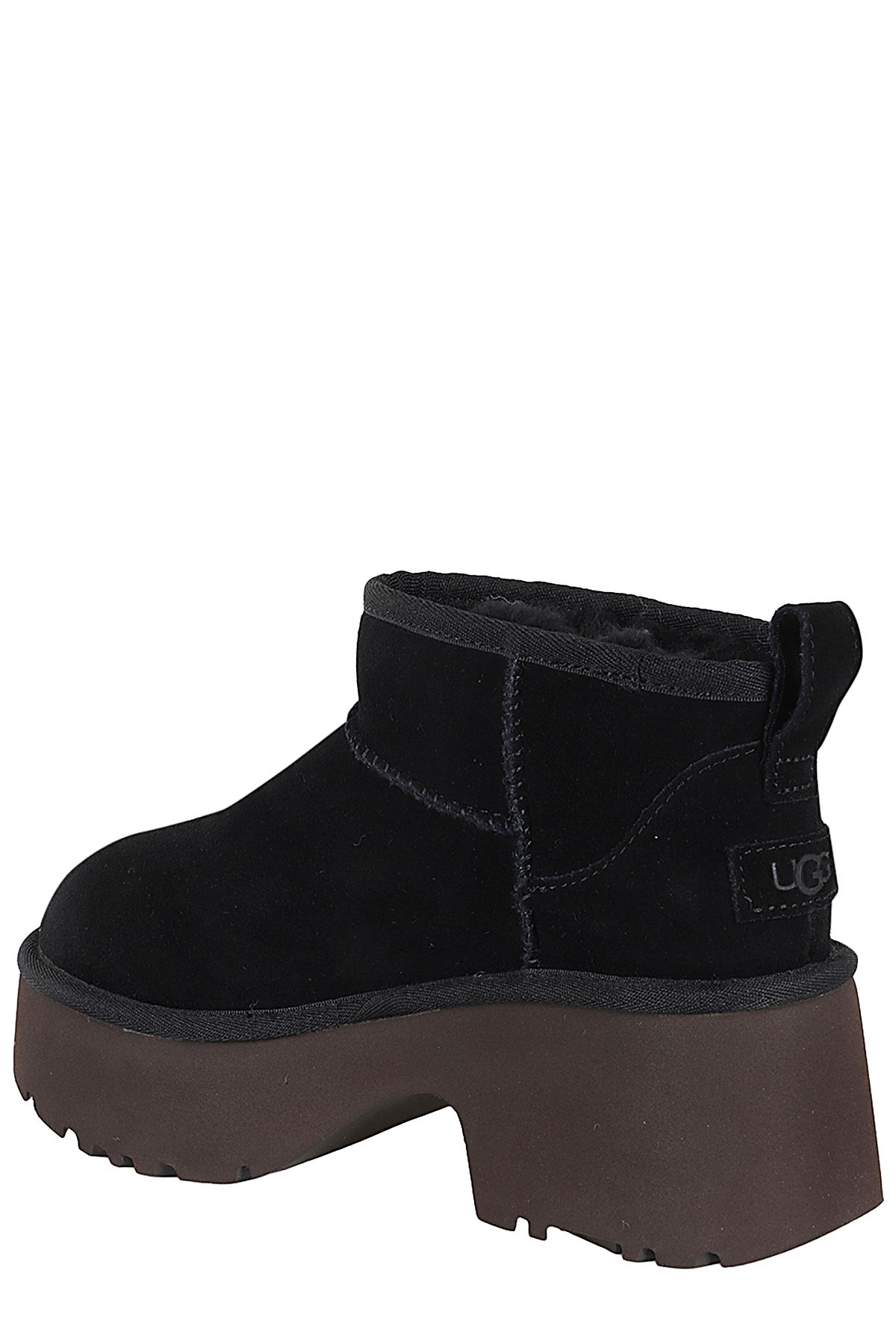 - Classic Mini New Heights ankle boot - Ugg - black color - suede upper - regenerated wool and lyocell lining - EVA sole - 7cm platform height - embossed heat-printed logo - round toe - rear tie
