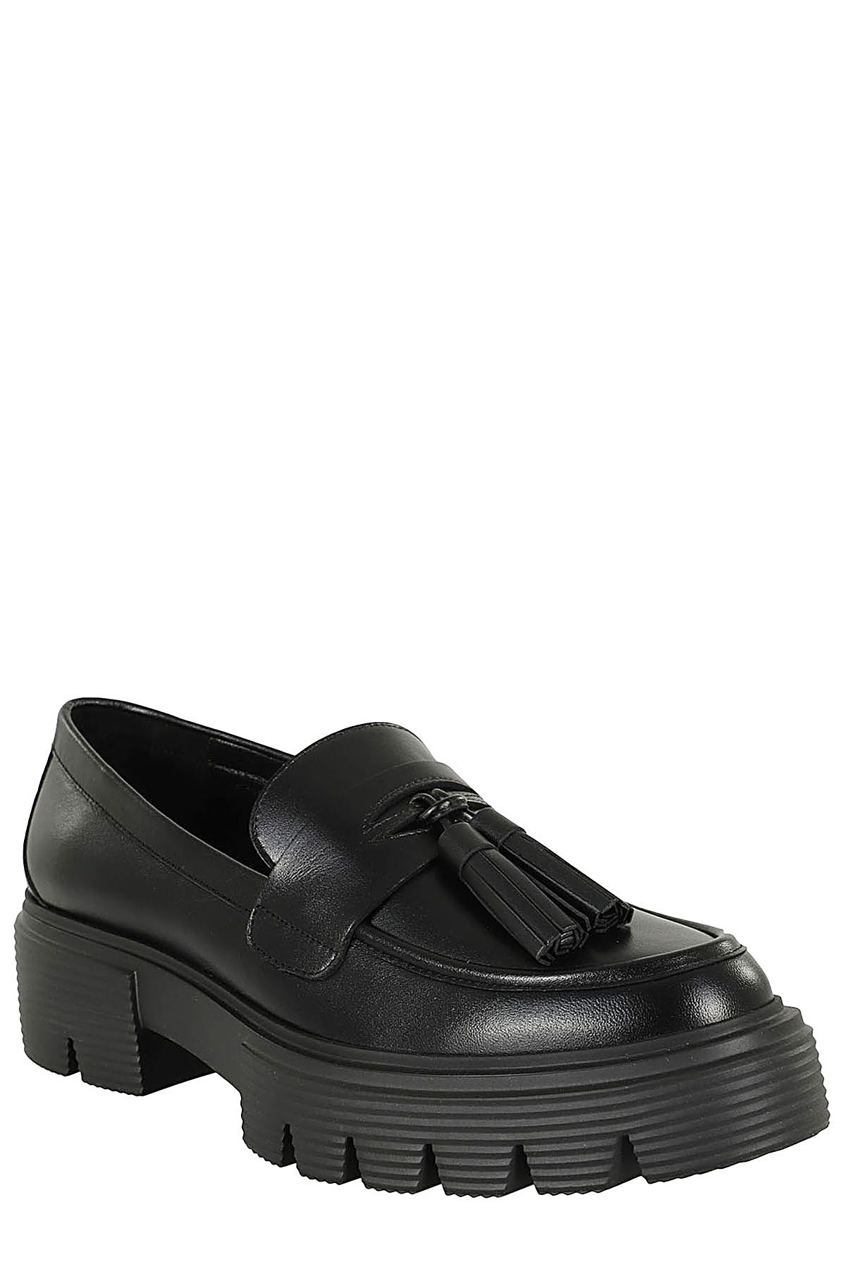 - Nolita Tassel Moccasin - Stuart Weitzman - Black color - Brushed leather upper - Rubber lug sole - Round toe - Tassel detail