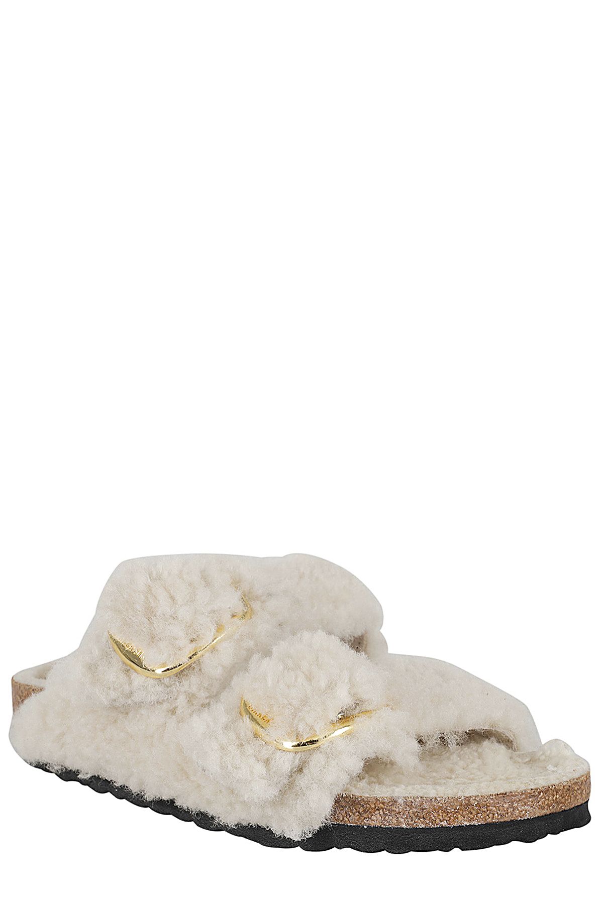 - Birkenstock Arizona Big Buckle Shearling Teddy- Brikenstock- Cream color- Teddy lamb fur upper- Teddy lamb fur insole- Adjustable metal buckle straps covered in fur- EVA sole