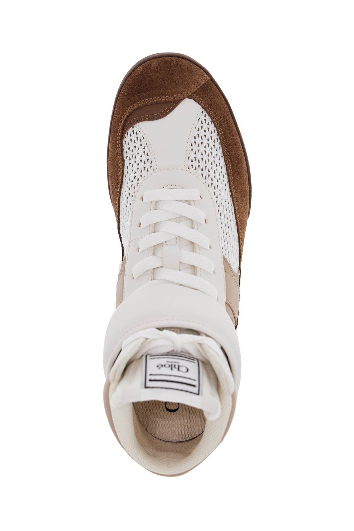 These high-top ChloAⓒ Kick sneakers, inspired by the world of classical dance and boxing, feature a color-block layered upper made of smooth leather, suede, and recycled mesh