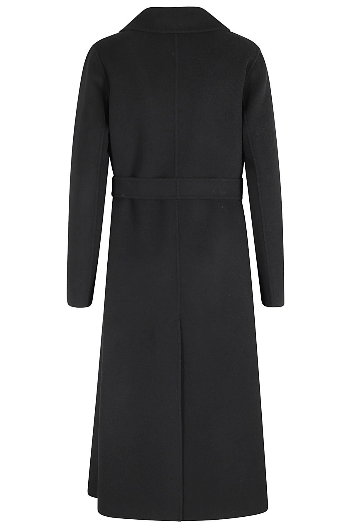 - Manu Coat - Weekend Max Mara - Black color - Classic lapels - Double-breasted fastening with belt - Side welt pockets - Below the knee length