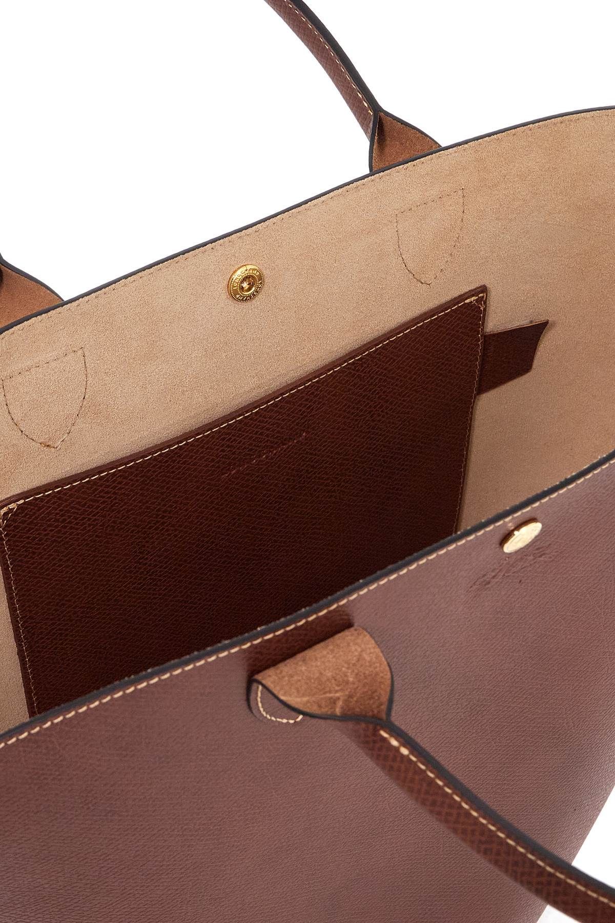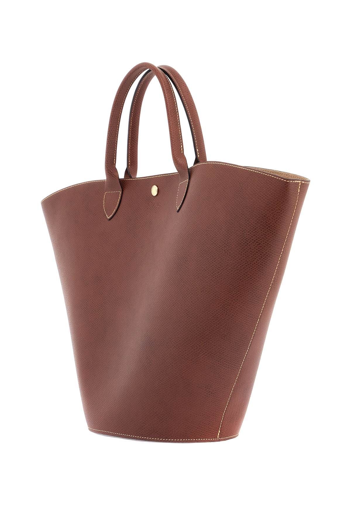 This Longchamp tote bag is made of Cuoio di Russio leather and features an embossed logo and a golden snap closure