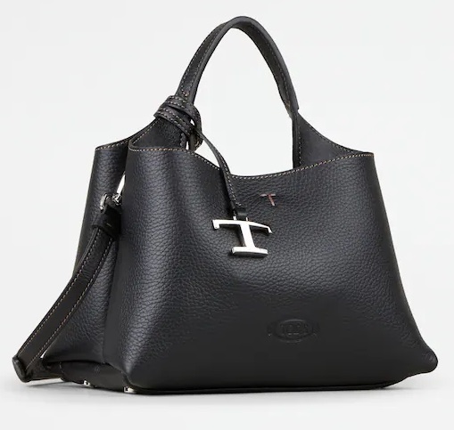 Fixed handles.Adjustable and removable shoulder strap.Closure with strap and snap button.Color: black.