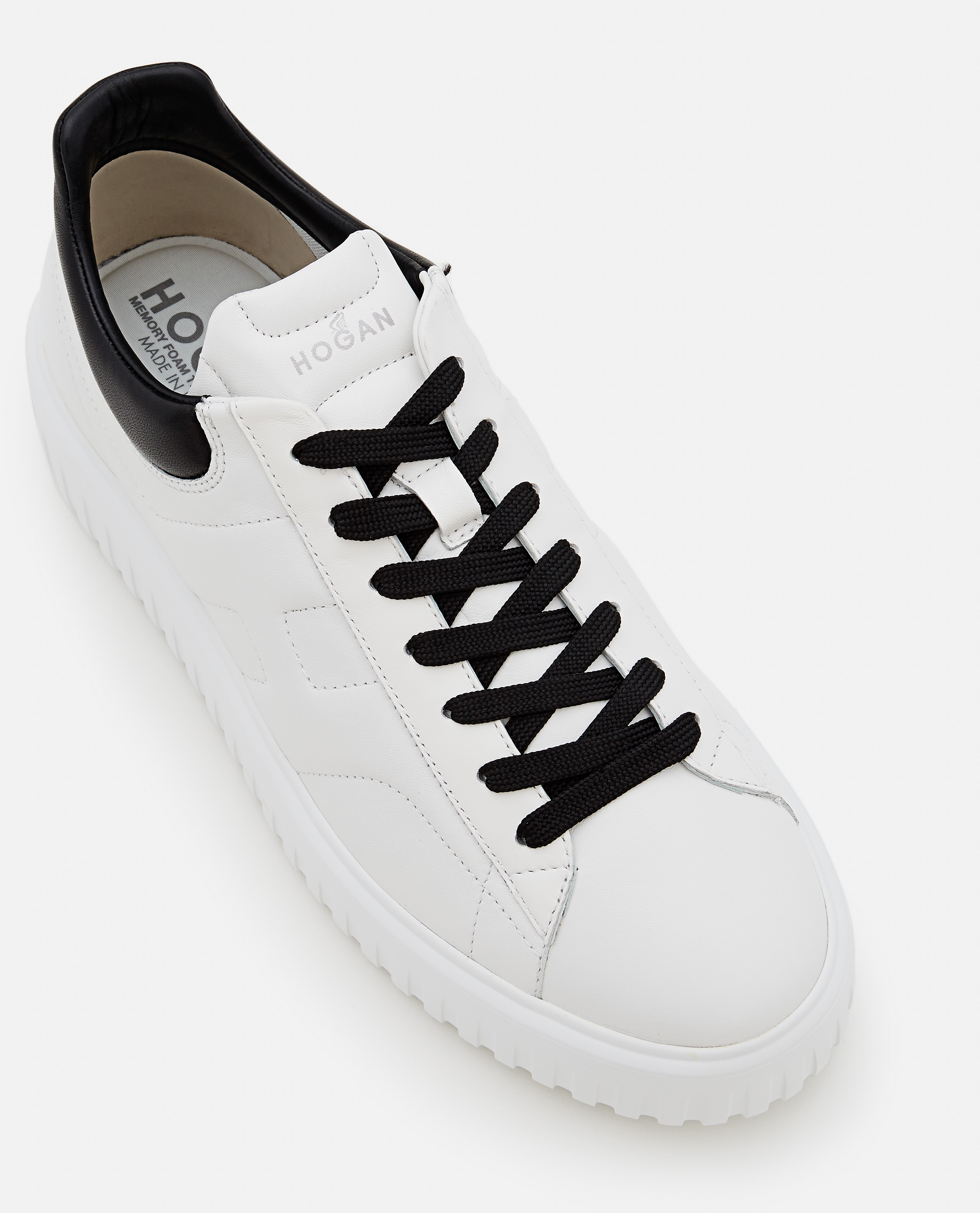 Lace-up shoes.Leather upper.Rubber sole.H side.Color: white.