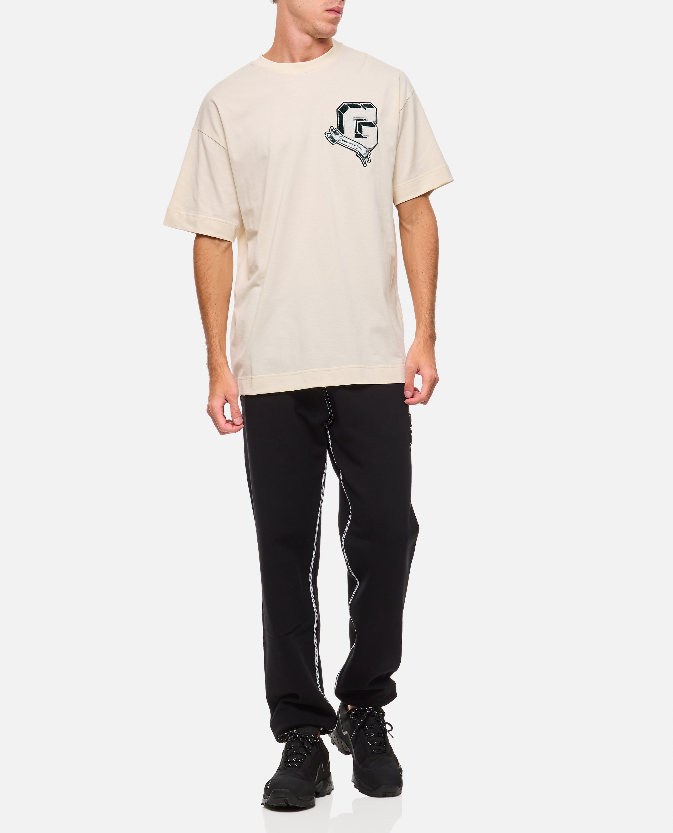 Short-sleeved crew-neck t-shirt.Embroidery on the front.Color: cream