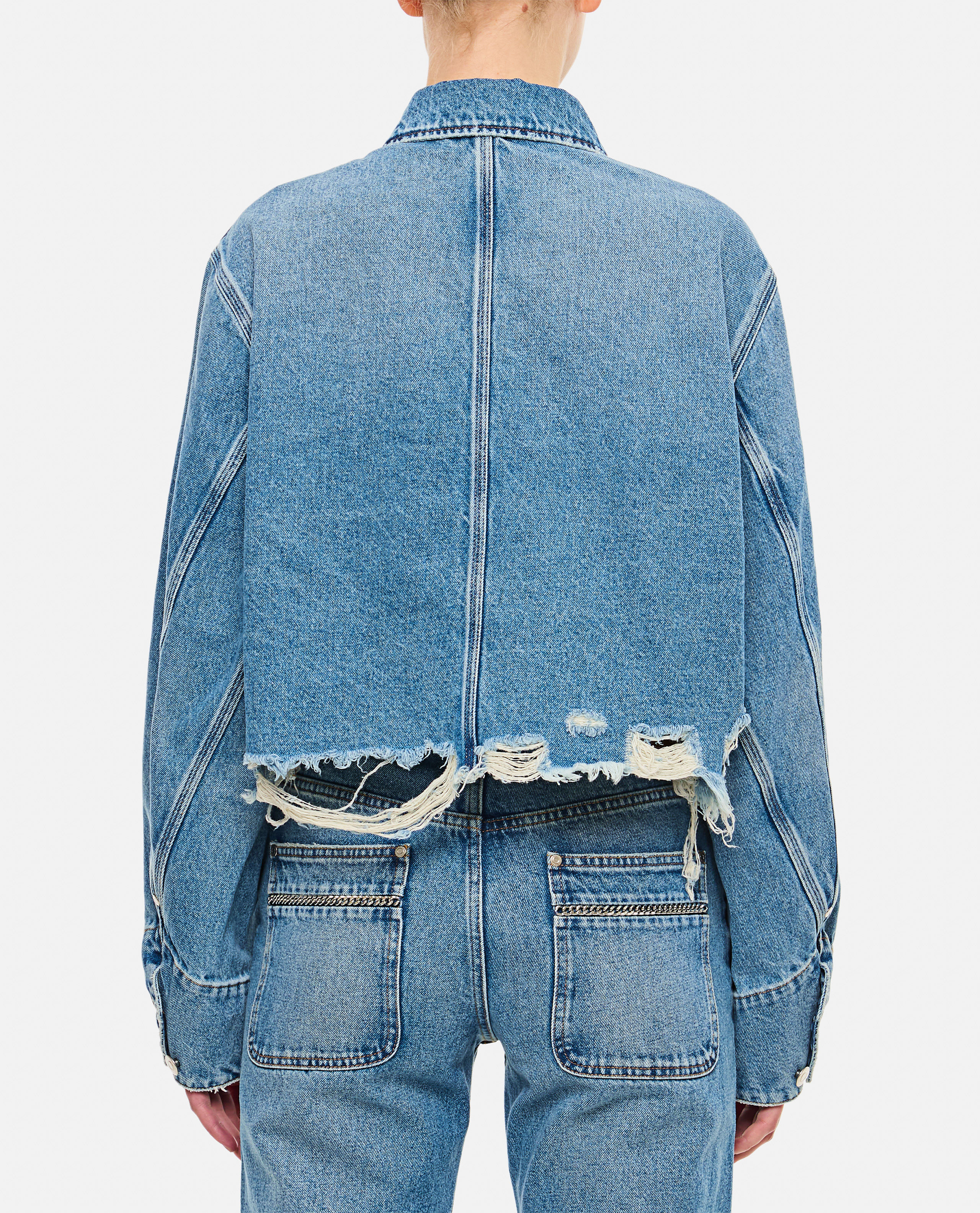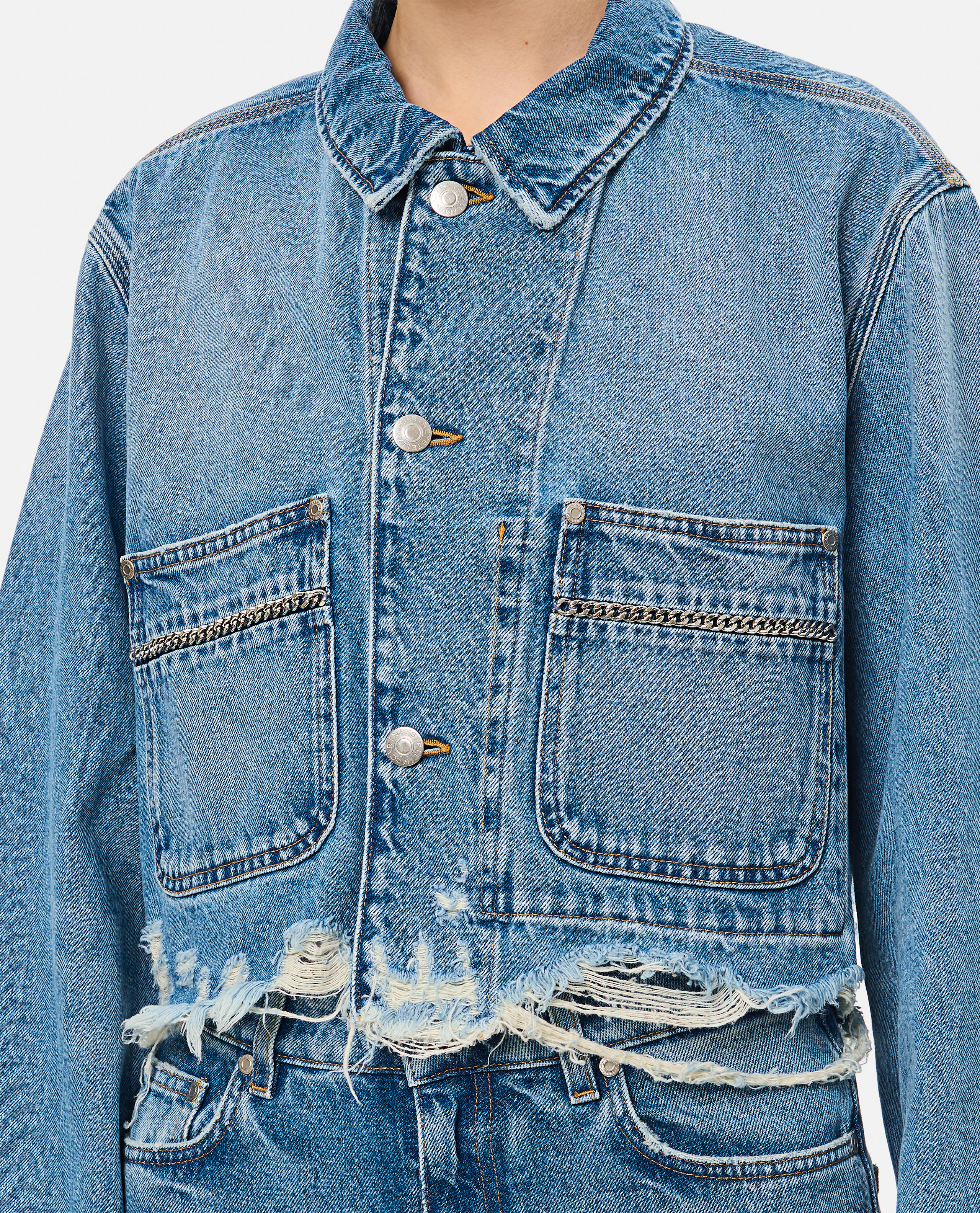 Aged effect detailsFalebella chains on the pocketsButton fasteningLong sleevesPointed collarFrayed hemColour: blue