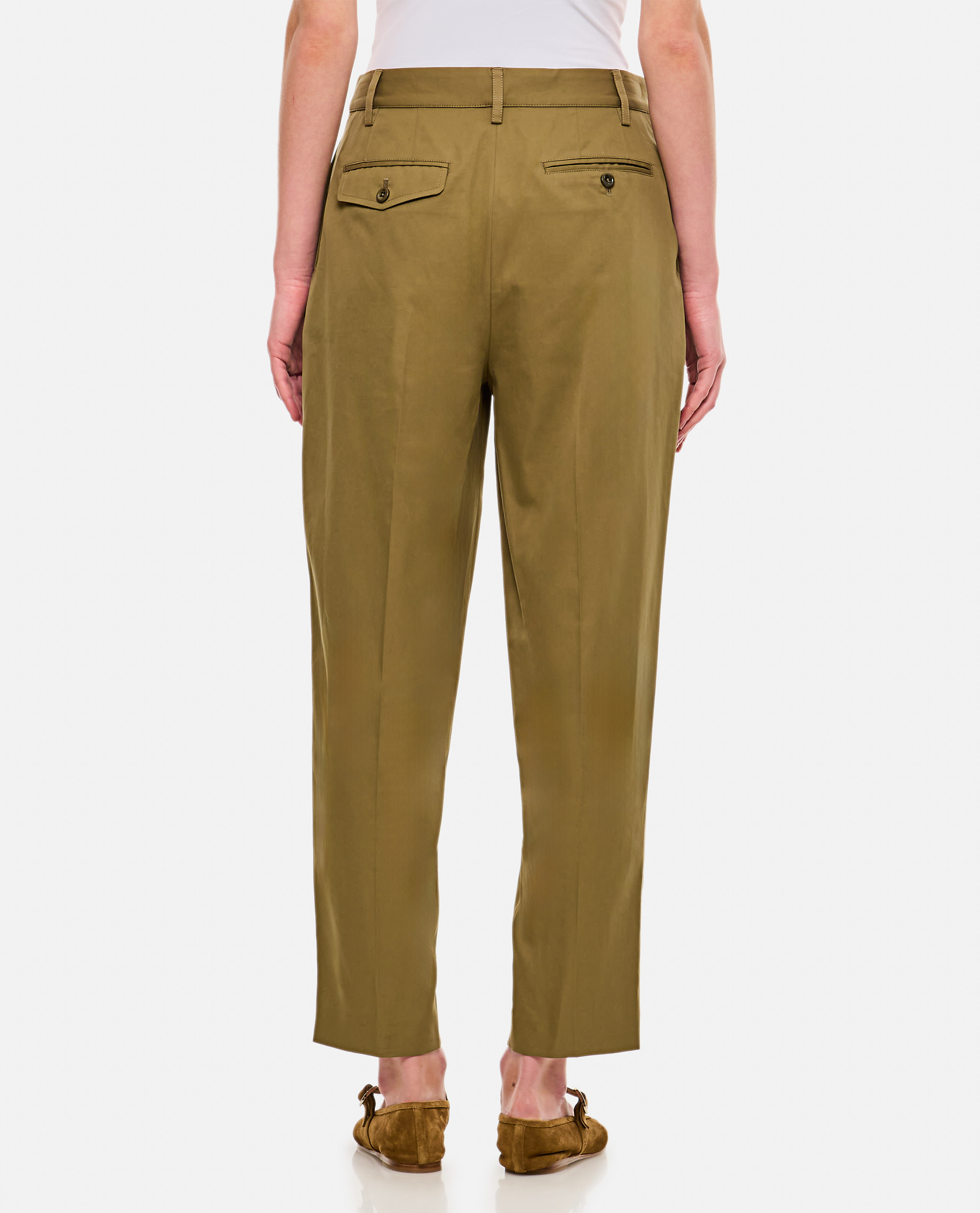 Front closure with zip and button.Front folds.Side pockets.Color: khaki