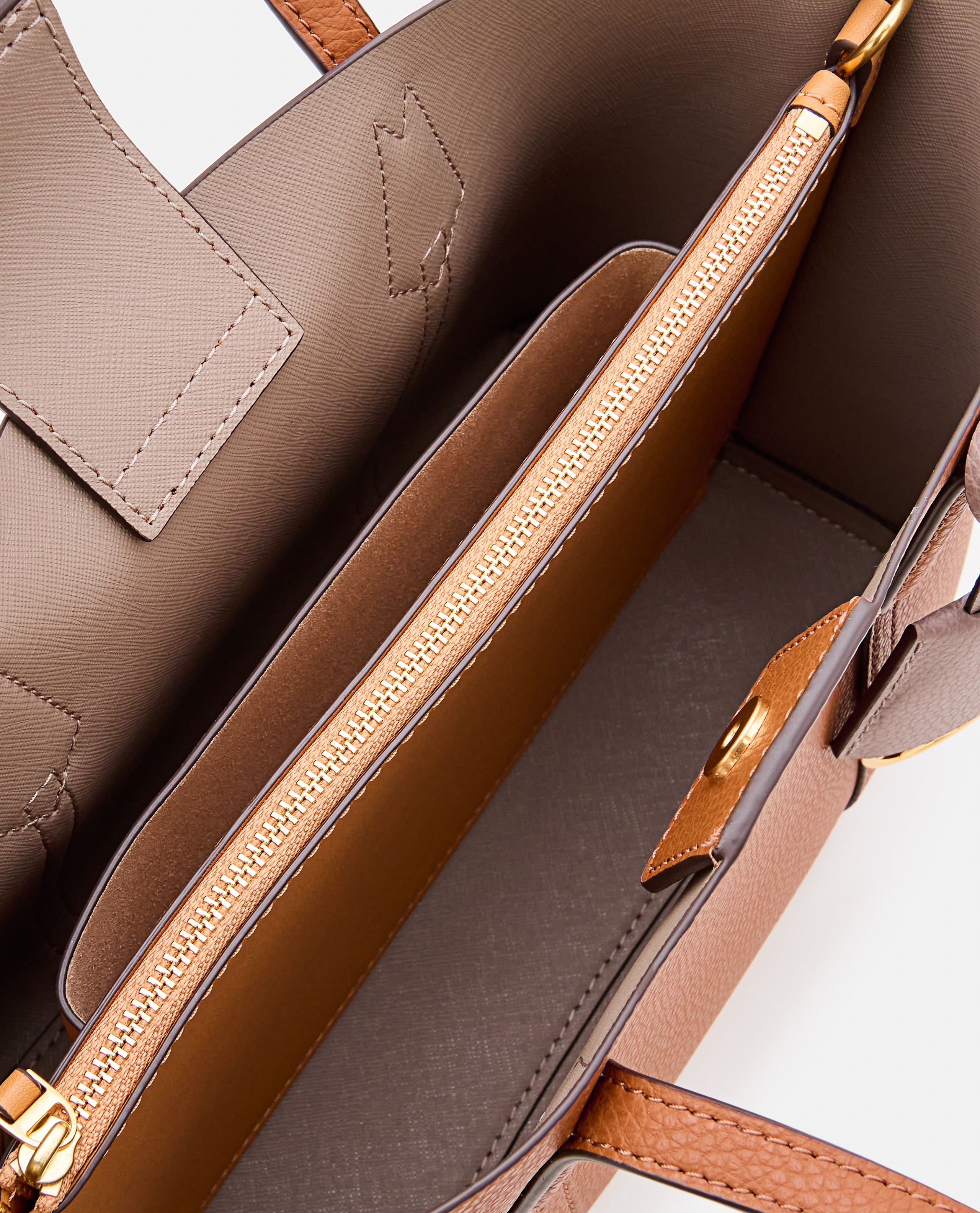 Details in contrasting colours on the inside and in the satin gold charmIt has a central zipped pocketA removable shoulder strap