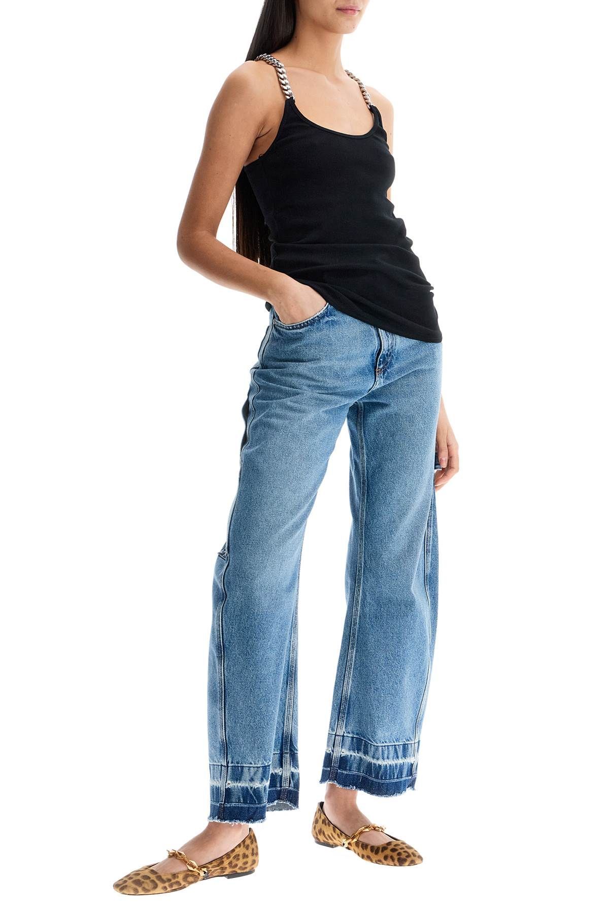 These Stella McCartney five-pocket jeans have a barrel silhouette and are made from organic cotton denim with a distressed wash and frayed hems