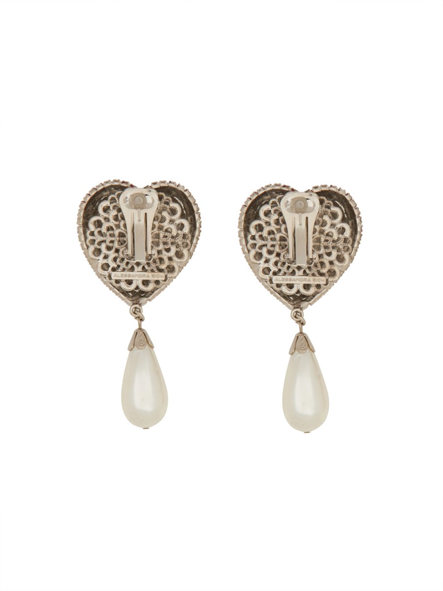 > 크리스탈 하트 이어링 위드 진주 팬던트