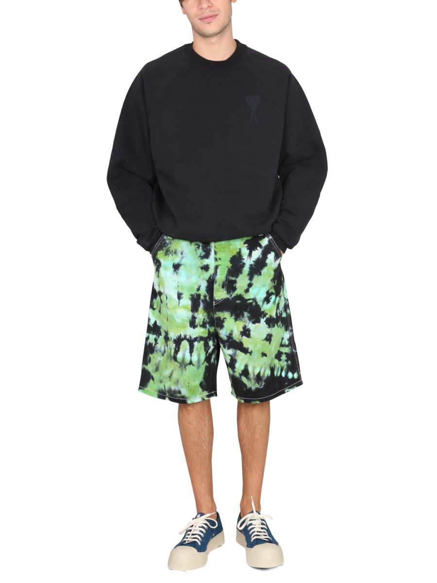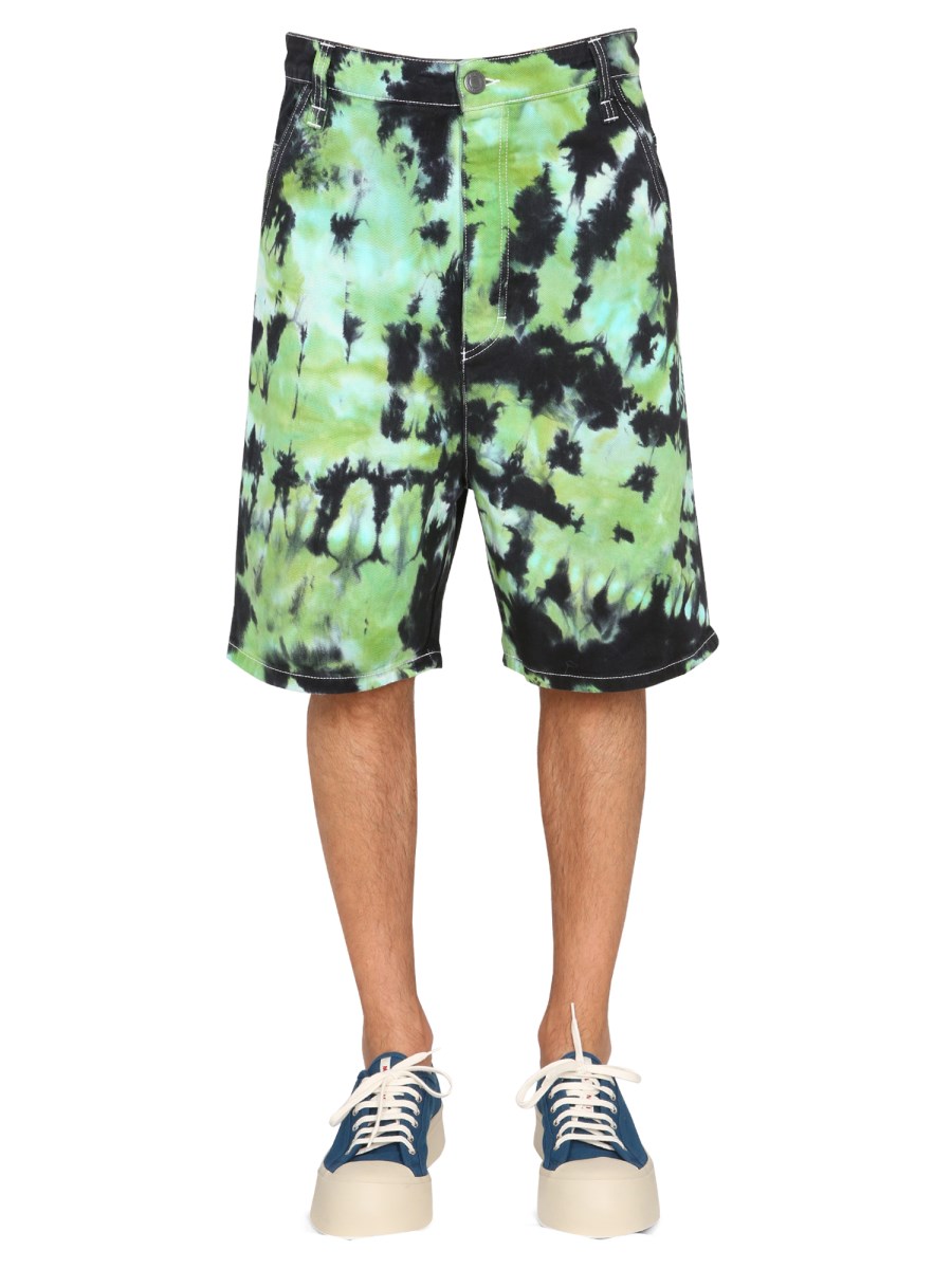 > 데님 버뮤다 쇼츠 위드 타이 다이 패턴