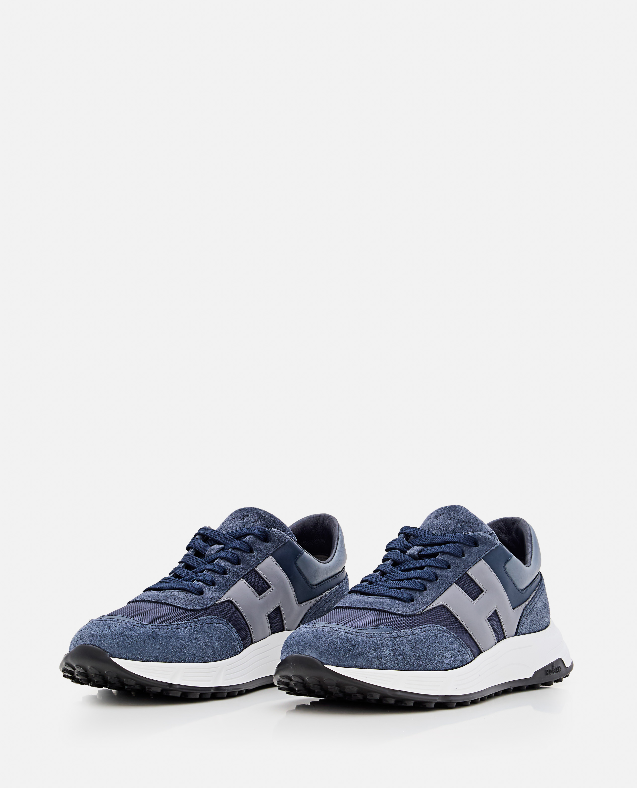 Lace up shoes.Leather upper.Rubber sole.Side logo detail.Color:?blue