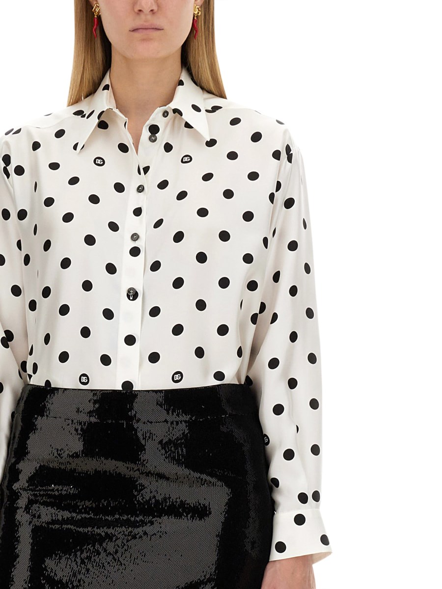 > 폴카 도트 프린트 실크 트윌 셔츠