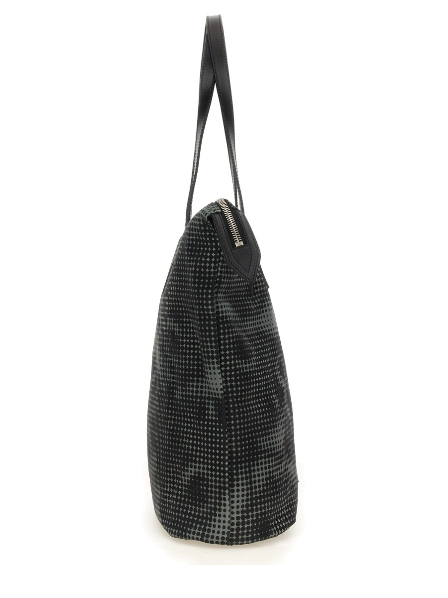 > 프린트 코튼 데님 토트 백 위드 레더 디테일