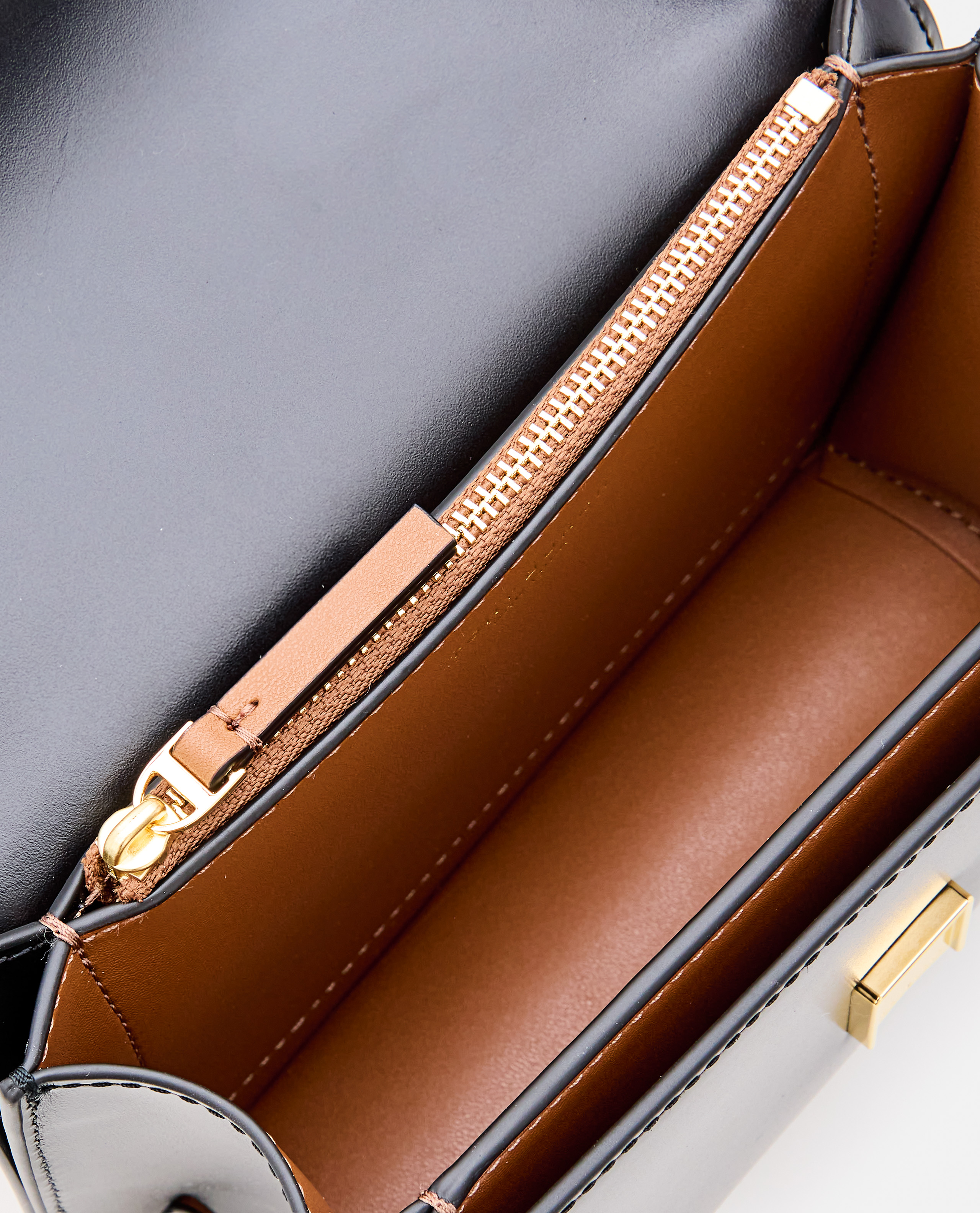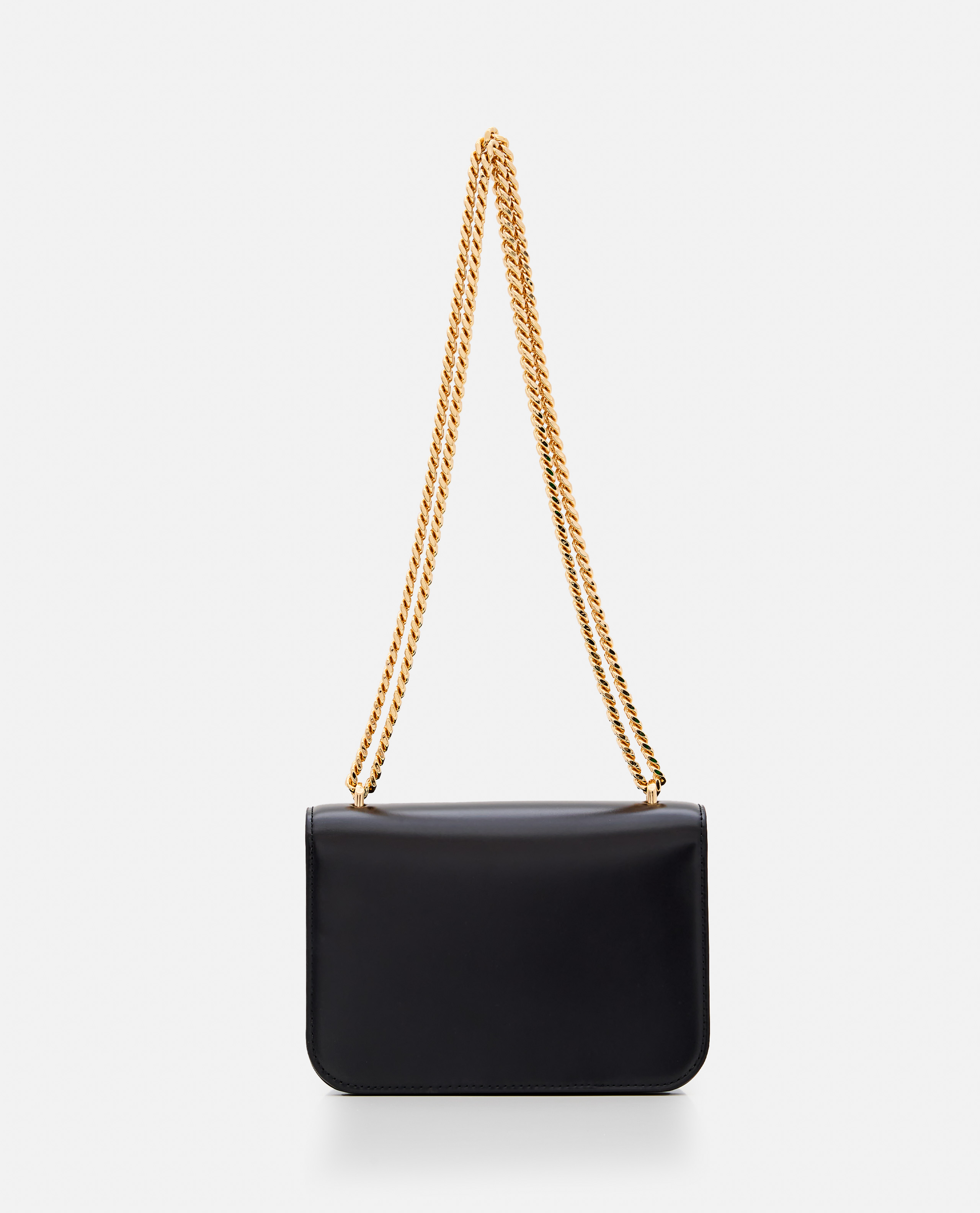 Calfskin.Flap with magnetic closure.Convertible chain shoulder strap.One internal zip pocket, two internal welt pockets. Color: black