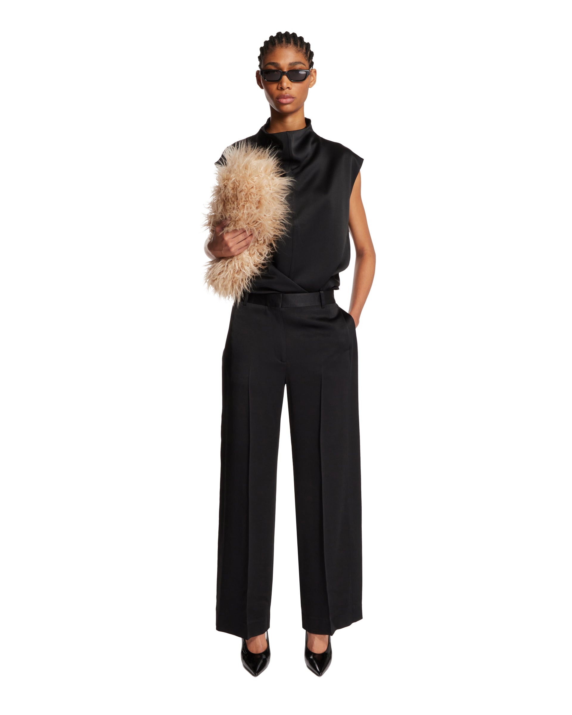 블랙 팬츠 위드 샤틴 웨이스트