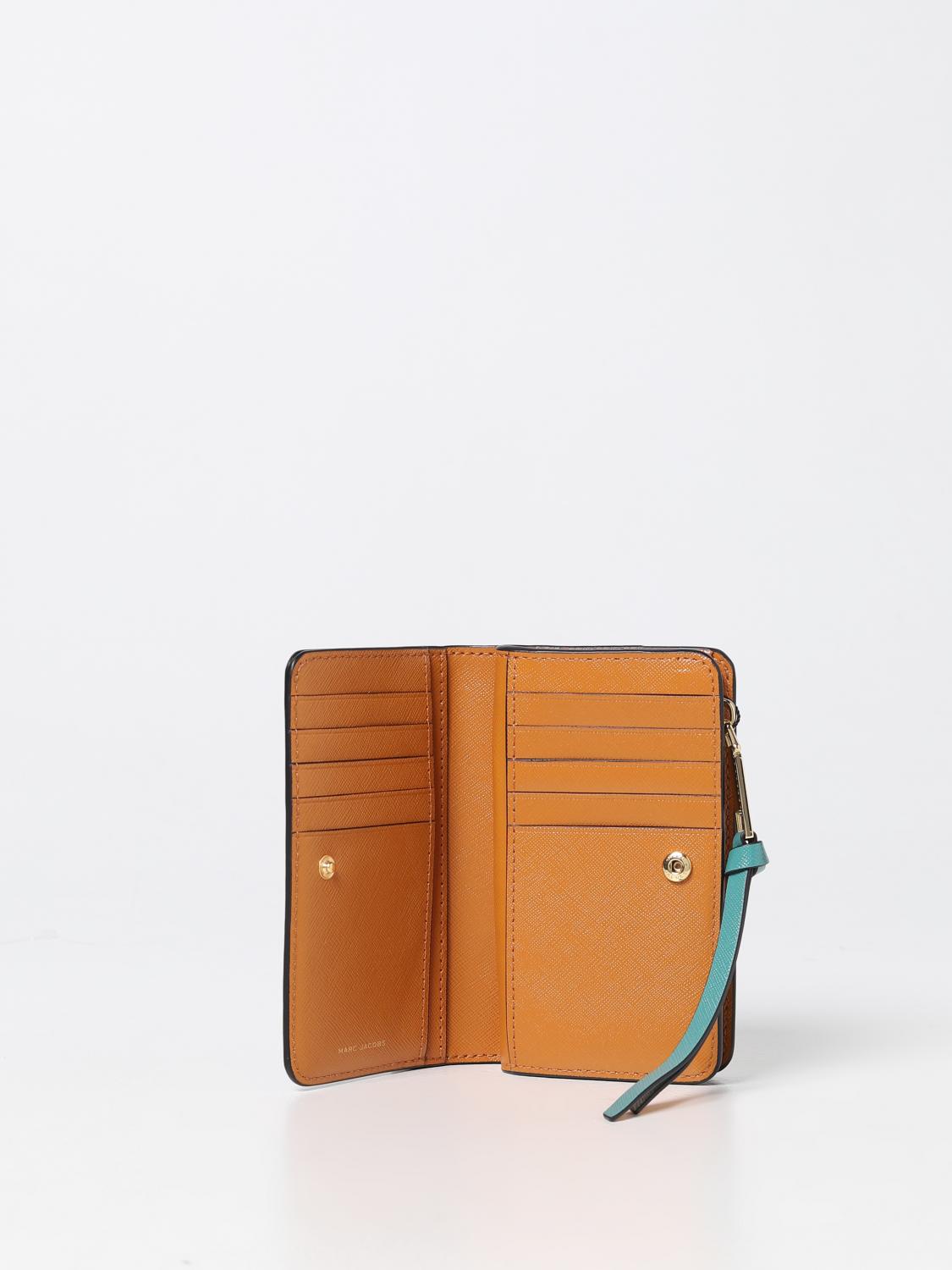 - Square design - Shiny saffiano leather - Double J Marc Jacobs metal paperclip - Closure with flap and snap button - Leather interior - Horizontal pocket for banknotes - 2 slit pockets - 10 card slots - Laminated logo - Zip pocket
