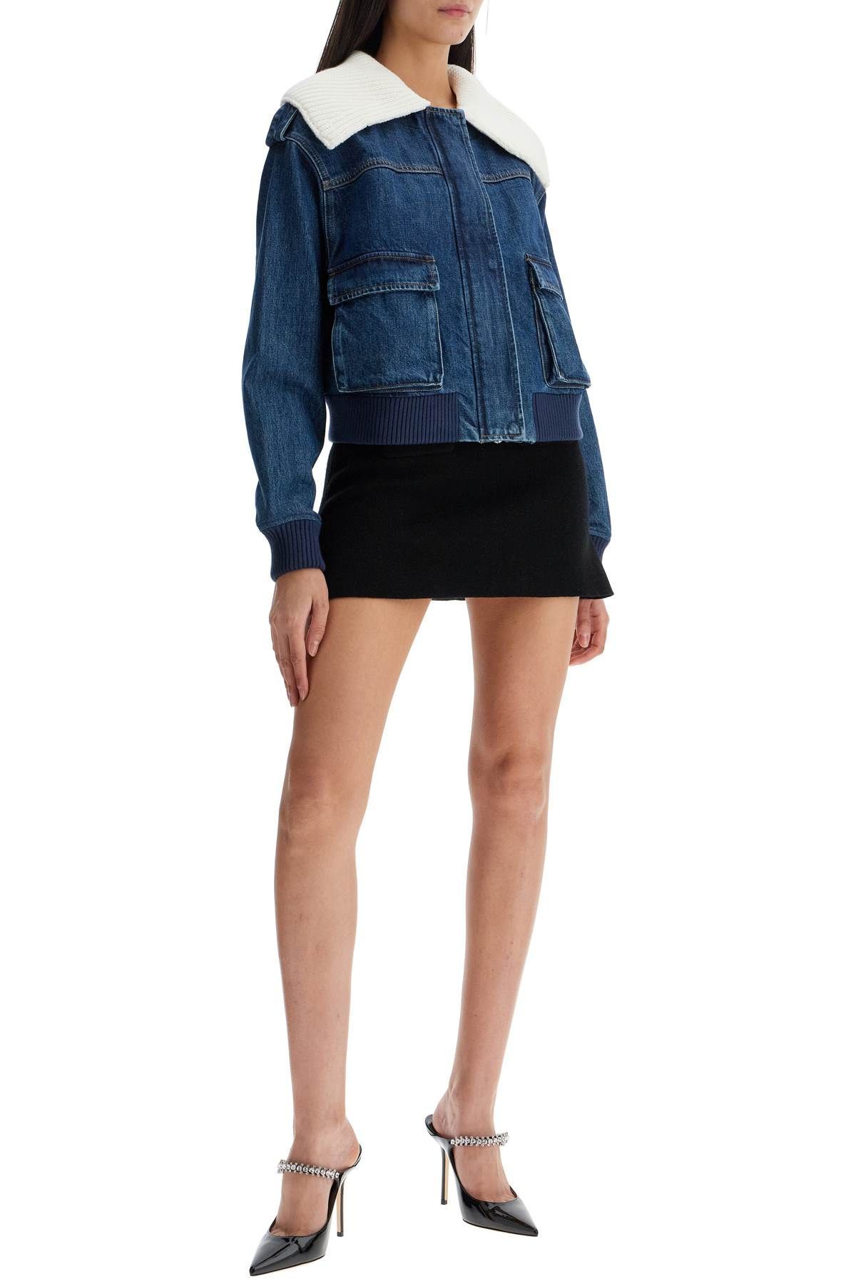 This Self-Portrait bomber jacket is made of cotton denim and features a removable maxi ribbed knit collar
