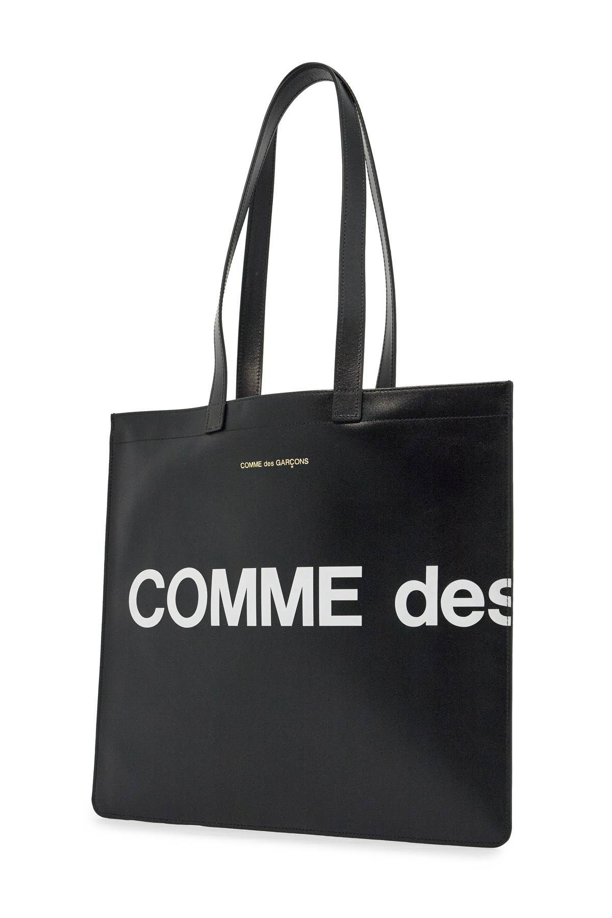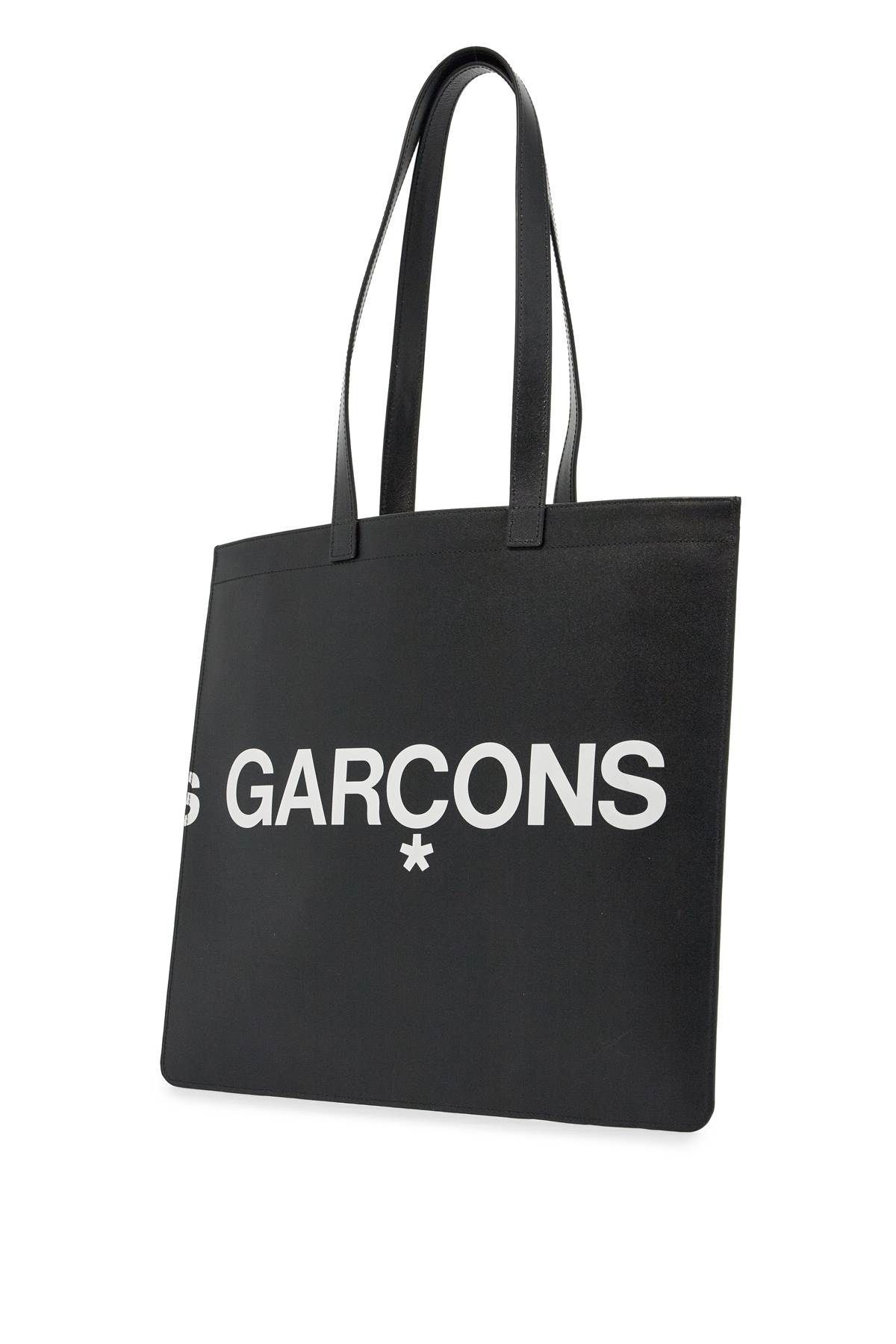 Comme des Garcons leather tote bag with contrasting maxi logo print on the front and on the back