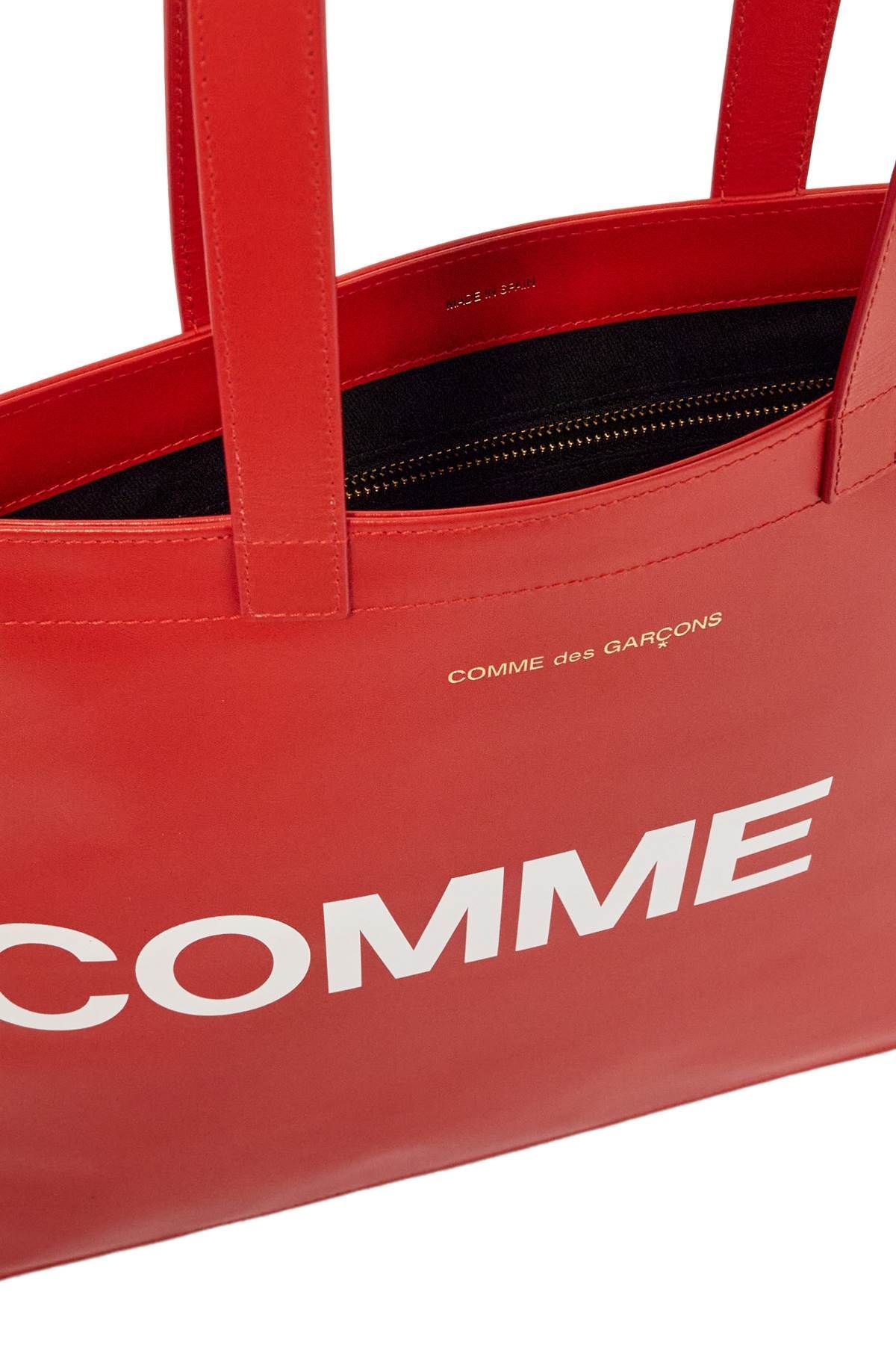 Comme des Garcons leather tote bag with contrasting maxi logo print on the front and on the back